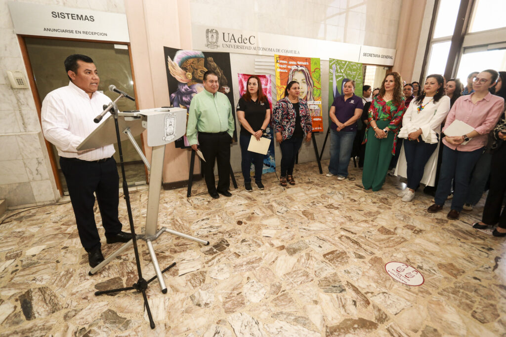 En su mensaje, el tesorero, Evaristo Alférez, compartió que, “Ella somos todas”, es una muestra artística realizada por la comunidad universitaria, en el marco de la conmemoración del Día Internacional de la Mujer y del 69 aniversario de la Universidad Autónoma de Coahuila, por lo que, felicitó a quienes hicieron posible este evento que contribuye a la formación integral de los estudiantes y reconoce el papel de la mujer en los diferentes ámbitos del quehacer universitario.