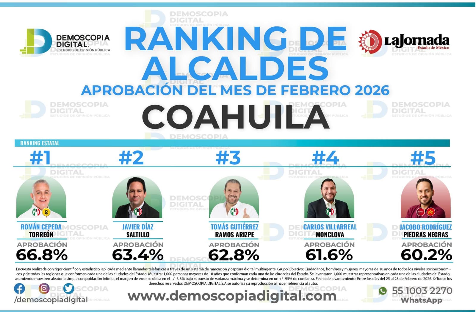 Román Cepeda encabeza aprobación ciudadana en Coahuila durante febrero