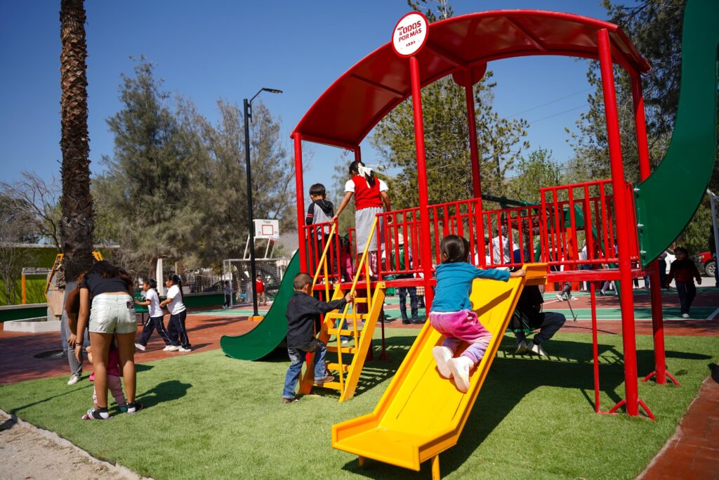 Dentro de las obras destacan, una cancha de pasto sintético, banquetas de concreto, estación múltiple para ejercicio, luminarias, botes para basura, bancas, árboles y una palapa, infraestructura diseñada para ofrecer un espacio integral que promueva la activación física y fortalezca el tejido social en la comunidad.