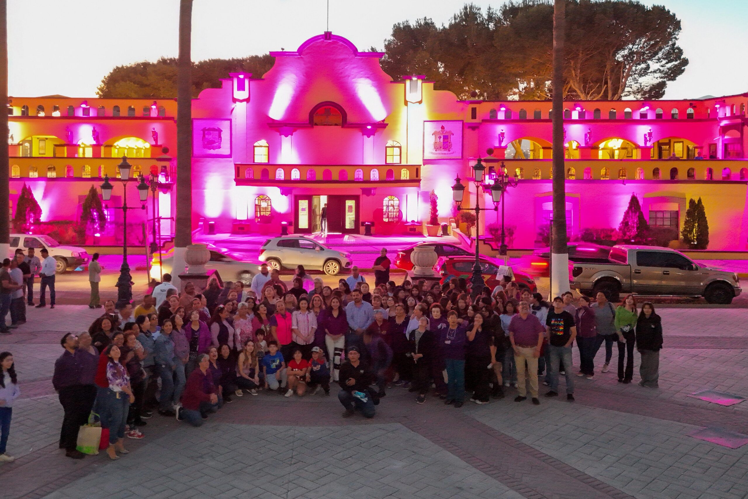 Como parte de la conmemoración, se realizó el encendido de la Presidencia Municipal en color morado, símbolo internacional de la lucha por la igualdad de género y el reconocimiento de los derechos de las mujeres.