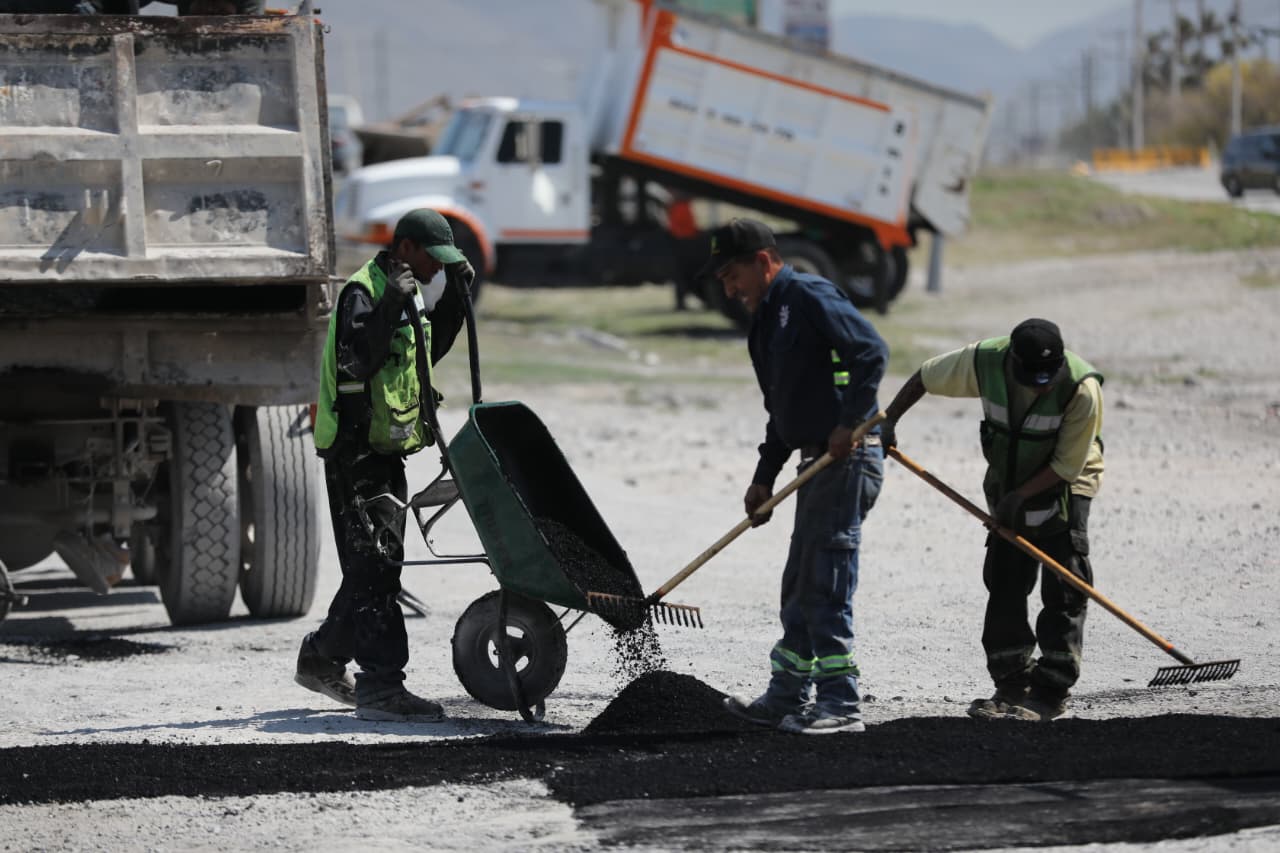 En acciones similares al oriente de la ciudad, cuadrillas municipales trabajaron en la reparación de diversos tramos del pavimento dañado sobre la vialidad lateral del bulevar Fundadores, a la altura del cruce con el bulevar Gaspar Valdez, en los límites con el municipio vecino de Arteaga.