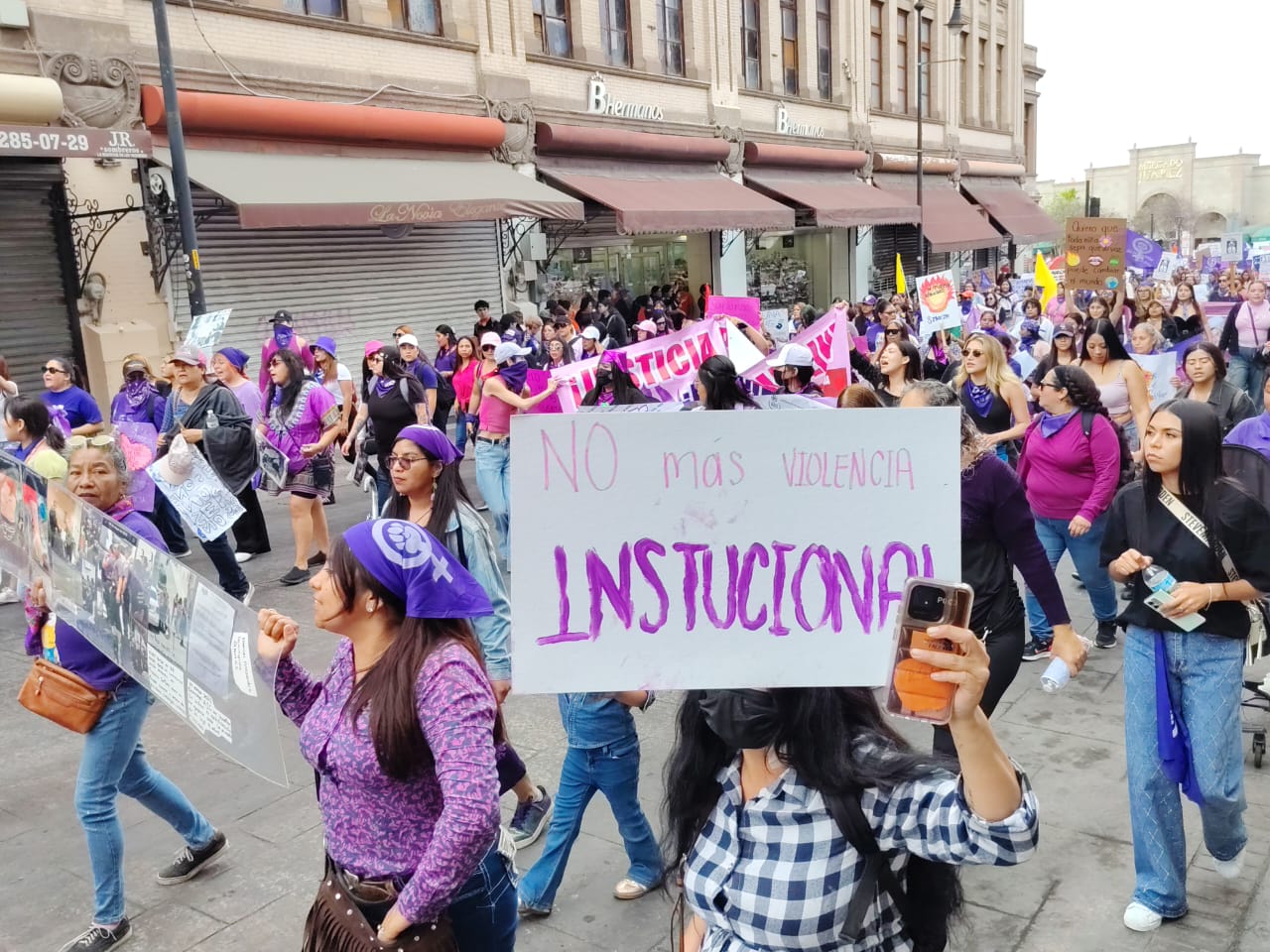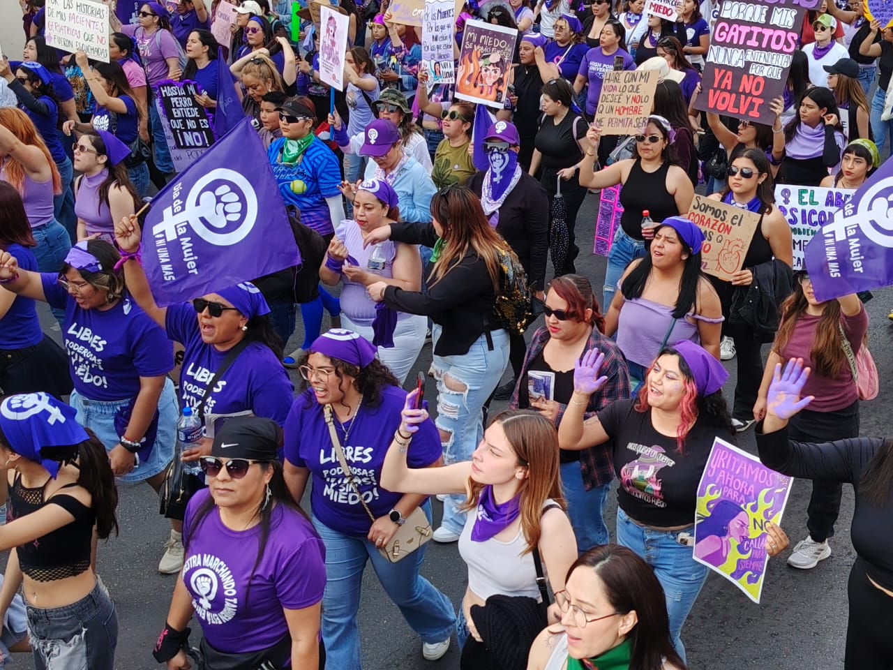 Portando pancartas, mantas, pañuelos morados y otros distintivos, las participantes reclamaron a una sola voz por los abusos sufridos por mujeres de todas las edades en esta capital y que aseguraron, no han sido escuchadas lamentablemente y a las que recordaron que no están solas en la búsqueda de la justicia que merecen.