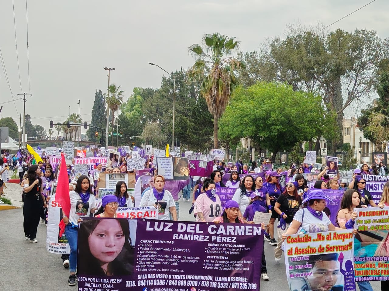 Cabe mencionar que en esta mega marcha se contó en todo momento con el apoyo de elementos del llamado «Agrupamiento Violeta» de la Policía Municipal de Saltillo, así como de un numeroso grupo de mujeres elementos de la Policía Estatal y de Protección Civil, instituciones que reportaron saldo blanco al término de las movilizaciones.(ÁNGEL AGUILAR)