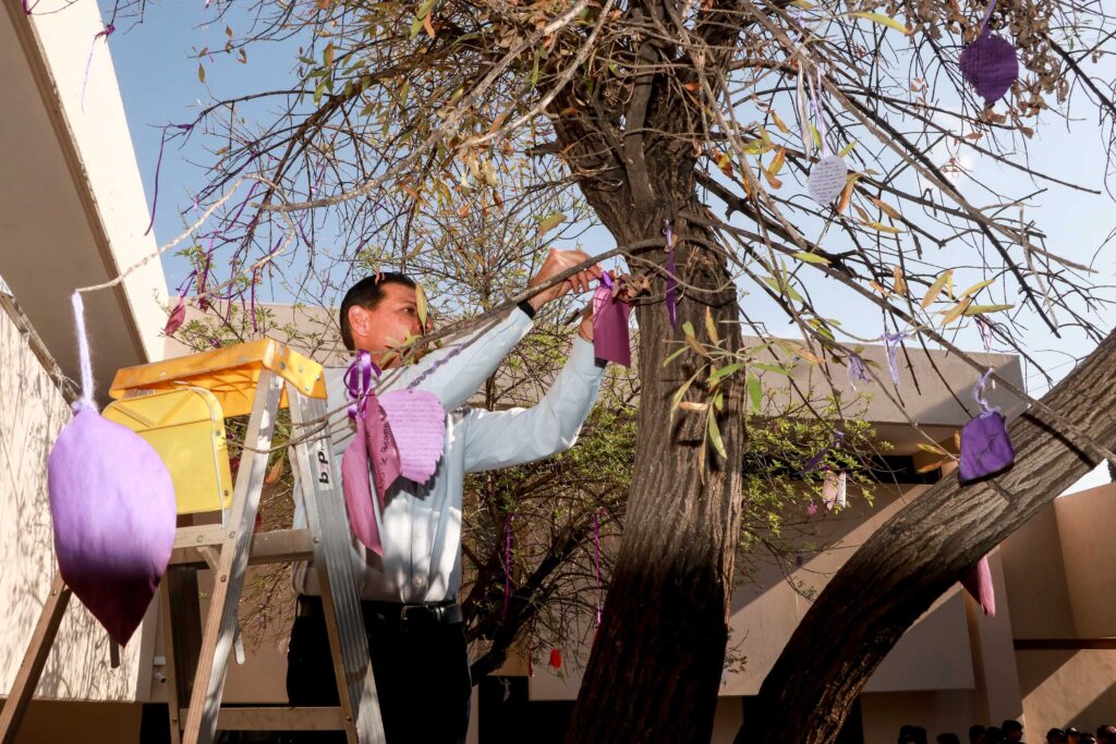 La Preparatoria Número Uno de la Universidad Autónoma de Coahuila, llevó a cabo la actividad “Árbol Violeta”, esto en el marco de la conmemoración del Día Internacional de la Mujer, la cual tuvo como objetivo que los estudiantes compartieran historias de las mujeres de su familia.