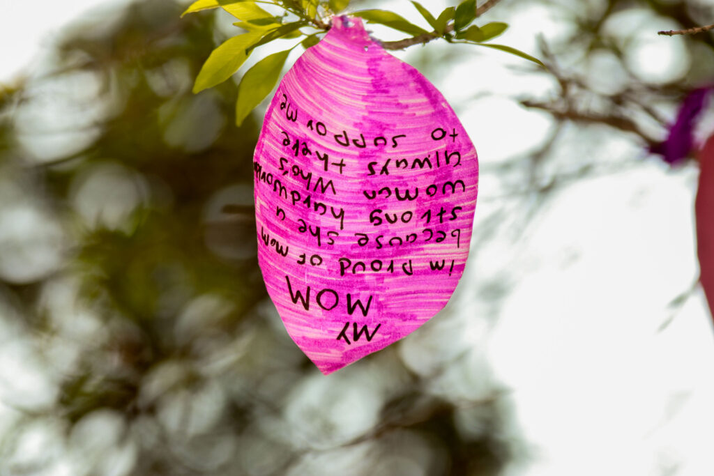 Explicó que, en los árboles, los estudiantes colocaron las historias de sus familiares, para así compartir lo que han vivido, “El objetivo es crear conciencia de la lucha que se está viviendo, de la lucha que viene desde el pasado y lo que podemos ir mejorando”.