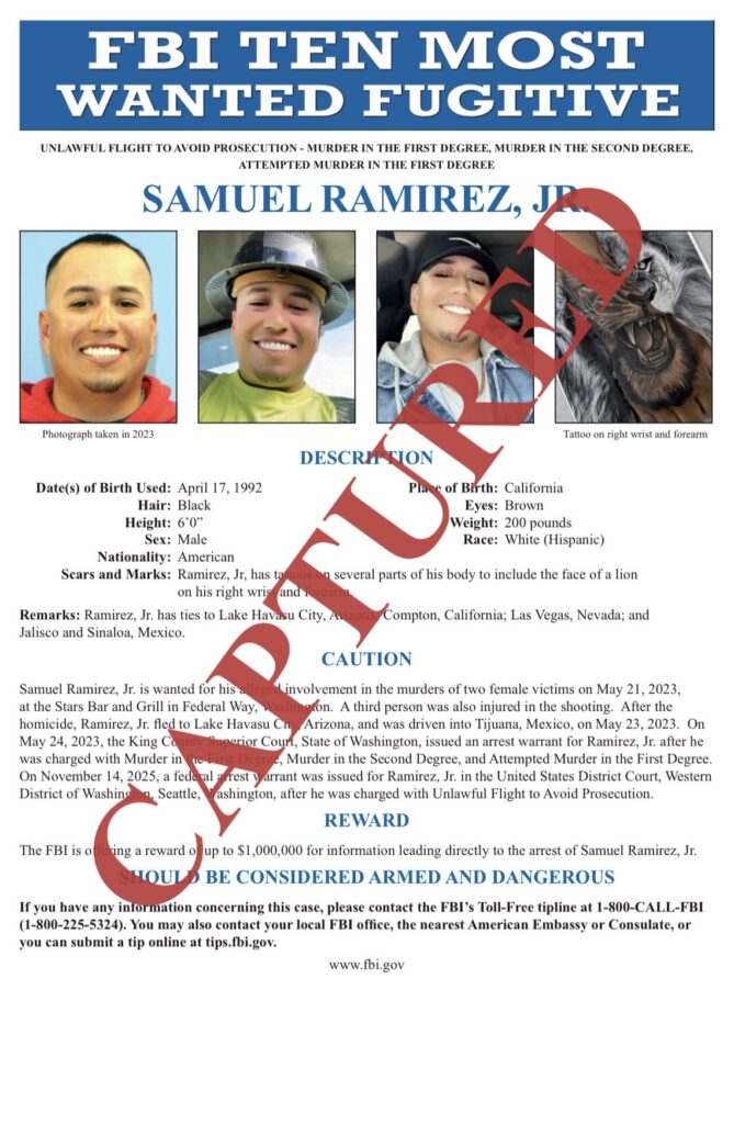🚨🚨 CAPTURED: Another FBI Most Wanted – Samuel Ramirez Jr., apprehended in Sinaloa, Mexico.