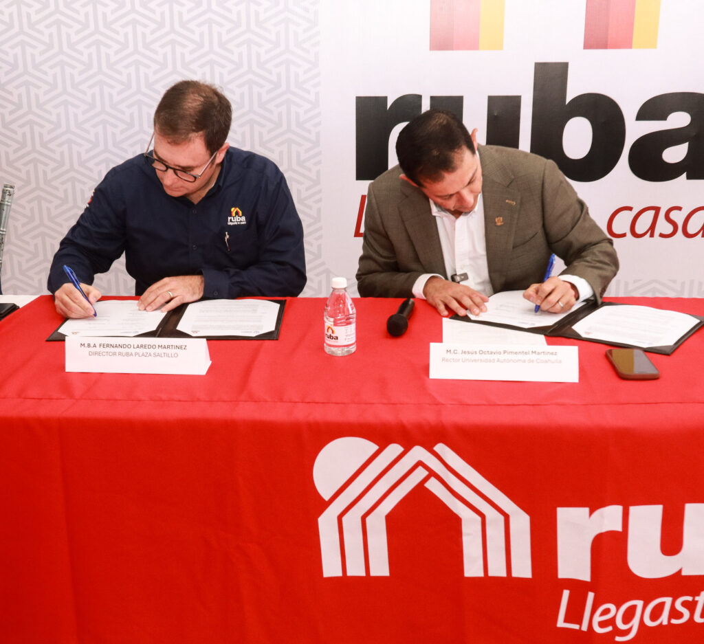El documento fue signado por el rector de la máxima casa de estudios, Octavio Pimentel Martínez y el director de RUBA Plaza Saltillo, Fernando Laredo Martínez, como testigos, la coordinadora general de Vinculación e Innovación Productiva de la UA de C, Karla Patricia Valdés García, el director de la Facultad de Arquitectura Unidad Sureste, Jesús Alberto Padilla Garza y el gerente de Proyectos RUBA, José Rodríguez Maldonado.