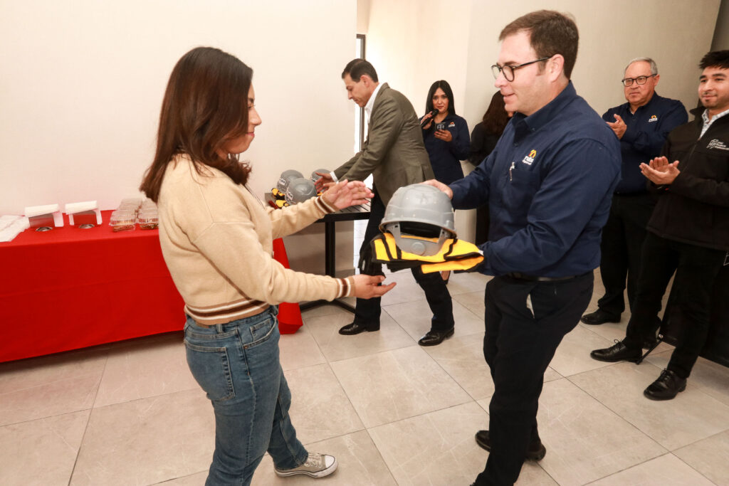 Al finalizar la ceremonia se llevó a cabo la entrega de equipo de seguridad a las y los estudiantes participantes en el programa de educación dual. (El Heraldo de Saltillo)