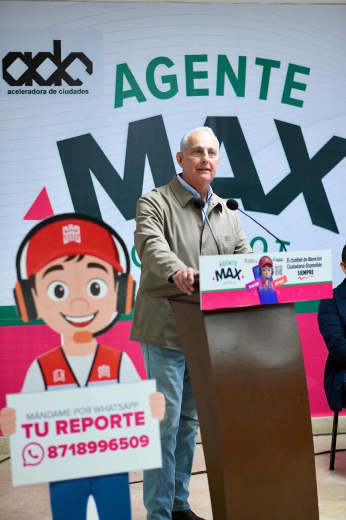 Torreón, Coahuila.- Con una inversión de 13 millones de pesos, este viernes el alcalde Román Alberto Cepeda González presentó al Agente Max, chatbot que integra la Inteligencia Artificial al servicio de la Dirección de Atención Ciudadana, para agilizar las solicitudes de las y los torreonenses.