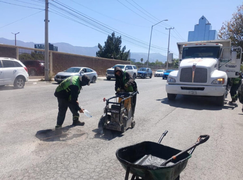 En este lugar, el Gobierno de Saltillo reparó el pavimento deteriorado por el alto flujo vehicular y las condiciones climáticas en la ciudad.