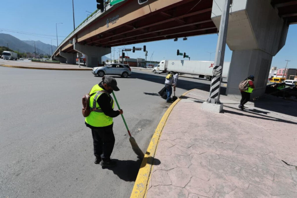 En tareas similares, cuadrillas saltillenses reportaron trabajos de limpieza general y deshierbe en diferentes áreas verdes y banquetas del Paseo de la Reforma, al oriente de la ciudad.