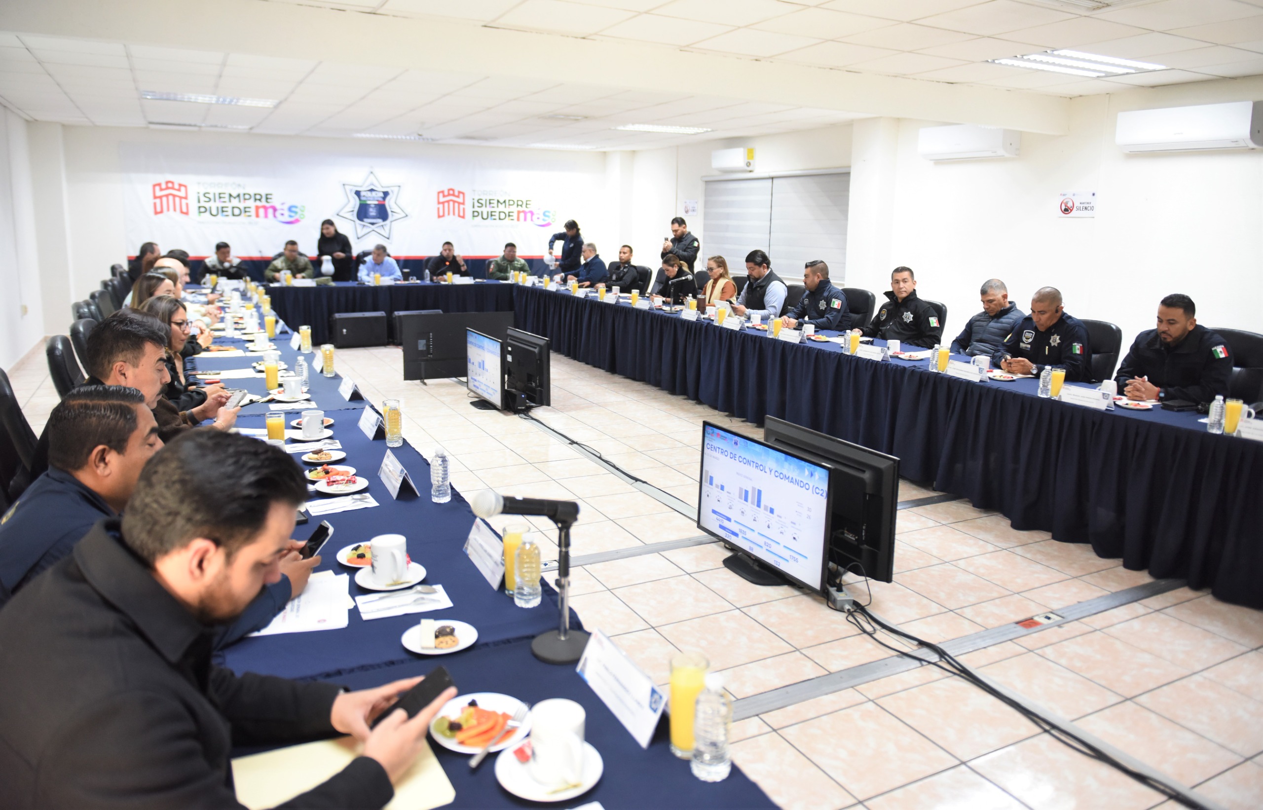 Torreón, Coahuila.- Este miércoles, durante la onceava reunión semanal de seguridad presidida por el secretario del Ayuntamiento, Eduardo Olmos Castro, en representación del alcalde Román Alberto Cepeda González, se revisaron los operativos conjuntos que se llevan a cabo en la ciudad en torno a fechas de Semana Santa, así como de fortalecimiento al programa “Vecino Cochino”.