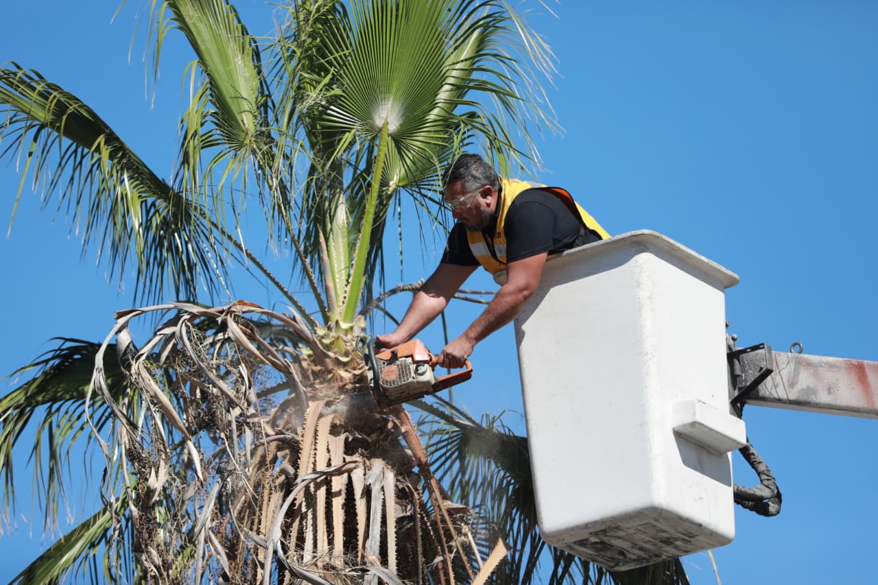 Como parte de las acciones permanentes para el mantenimiento urbano y la prevención de riesgos, el Gobierno a cargo de Javier Díaz González llevó a cabo trabajos de poda en las palmas de la especie Washingtonia ubicadas sobre el camellón central del bulevar Venustiano Carranza.