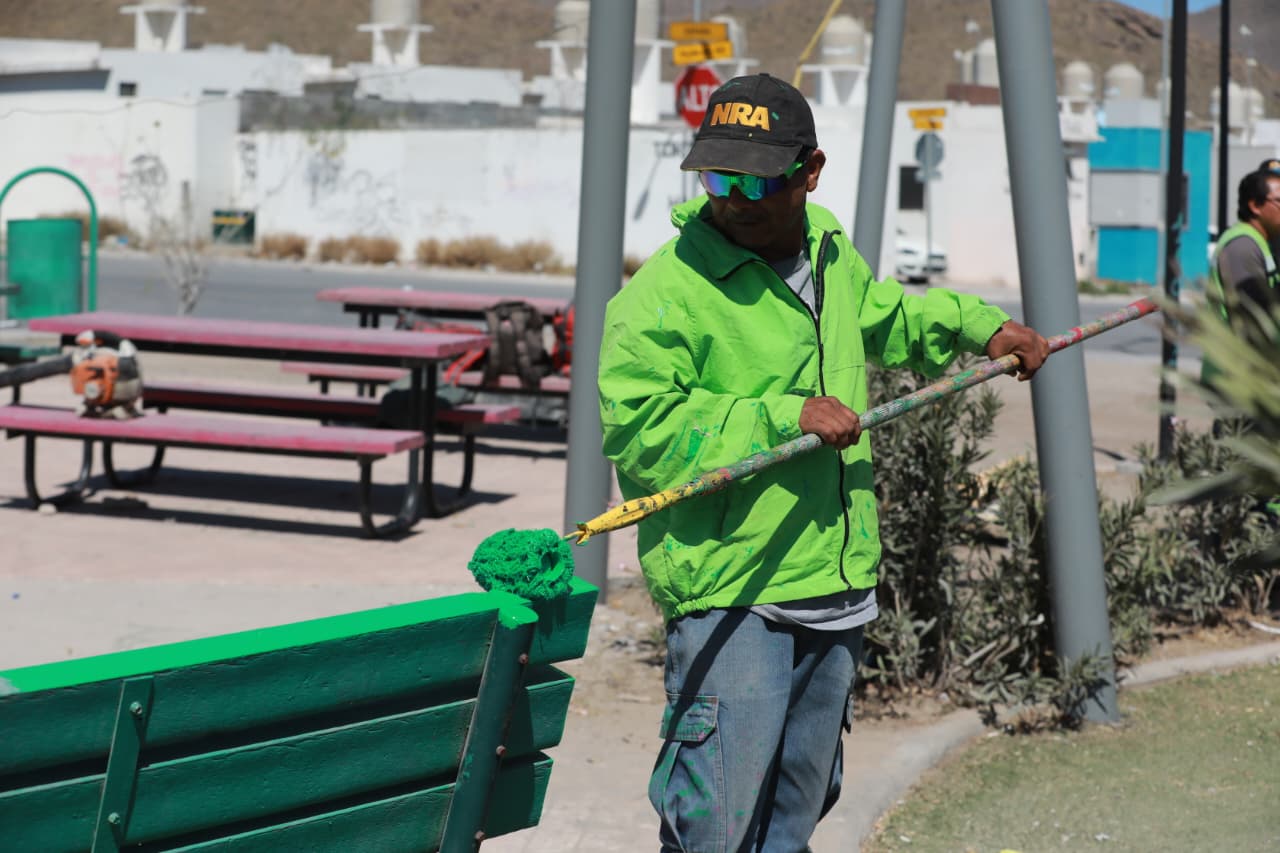 En este espacio público del sector poniente de Saltillo, el Gobierno Municipal aplicó pintura en juegos infantiles, bancas y mobiliario urbano, además de realizar limpieza general en beneficio de las familias que habitan cerca de este lugar adecuado para las actividades al aire libre y la convivencia comunitaria.