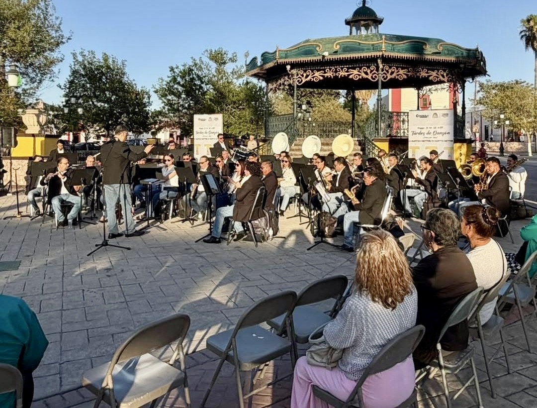 La Plaza Principal frente a la Presidencia Municipal de Ramos Arizpe volvió a convertirse en punto de encuentro para la música y la tradición con una nueva edición de las “Tardes de Danzón”, actividad que continúa siendo un espacio apreciado por la comunidad, especialmente entre las personas adultas mayores.