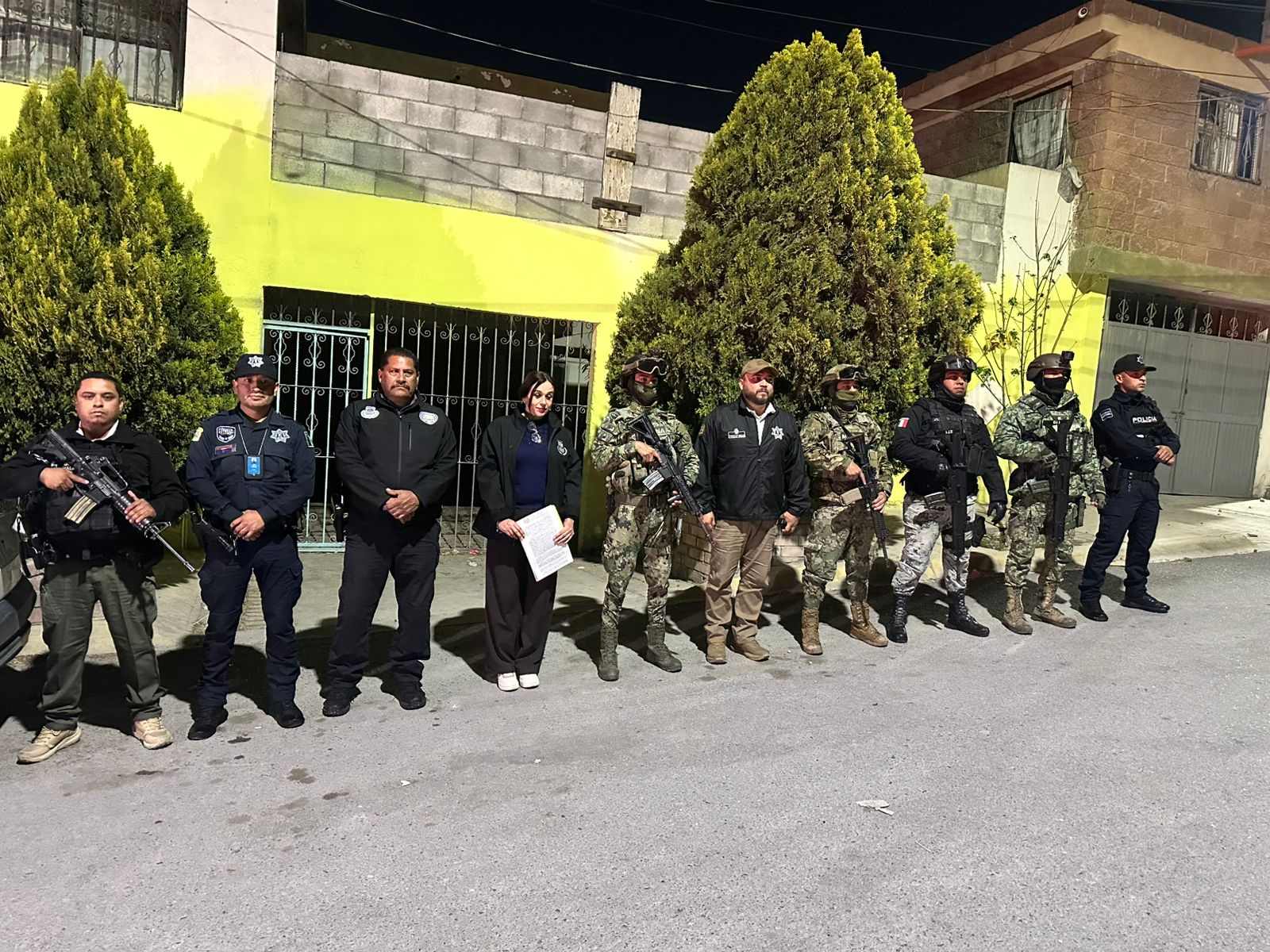 Con lo anterior, la Fiscalía General del Estado de Coahuila realizó el cateo en el domicilio ubicado en la calle Rosario Pérez, de la colonia Julieta Pérez, al sur de Saltillo, con el apoyo de la Secretaría de Seguridad Púbica de Coahuila, Ejército Mexicano, Guardia Nacional, la Marina Armada de México y la Policía de Municipal de Saltillo con el agrupamiento K9.