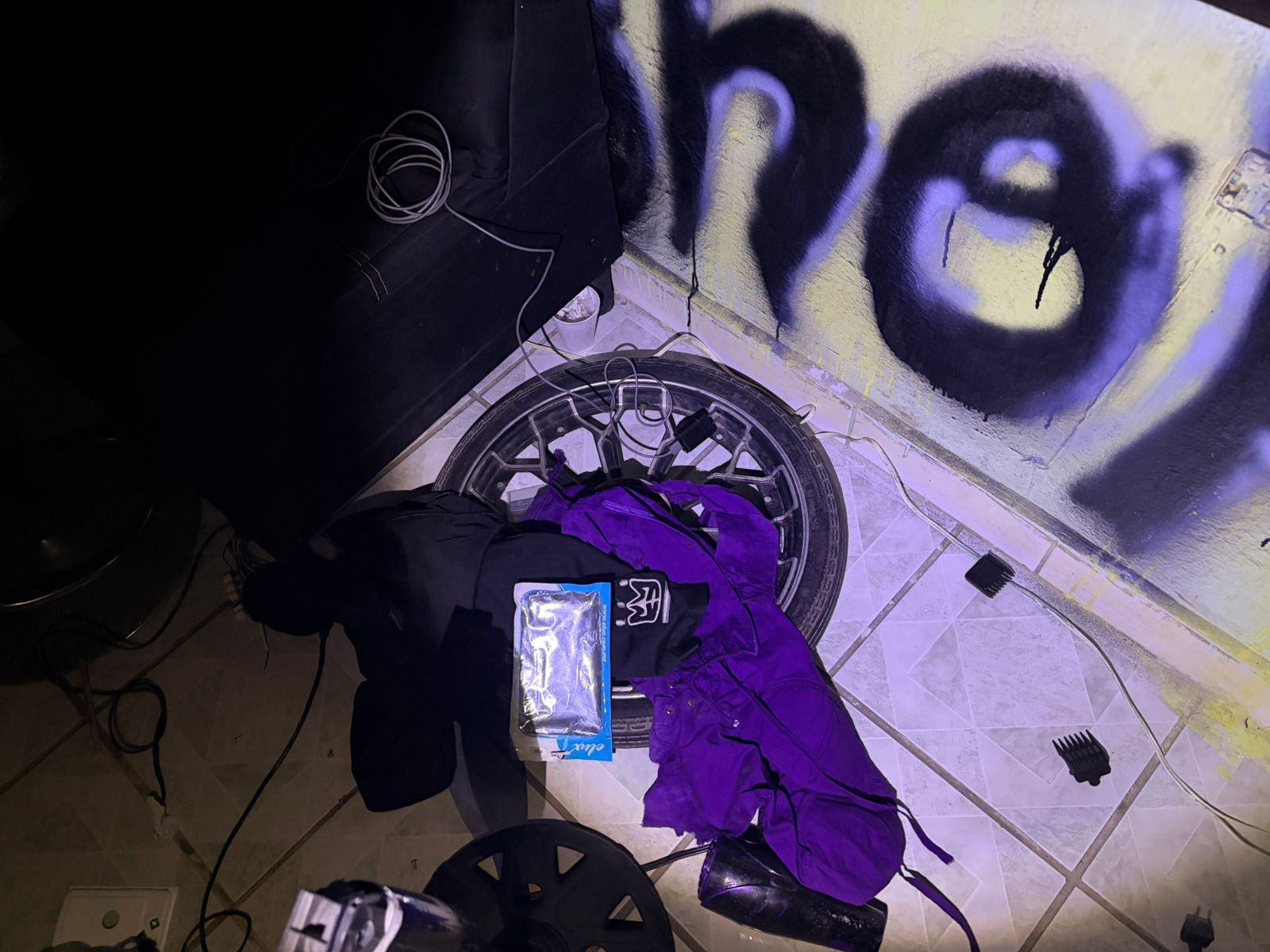 Al interior del domicilio se localizó una moto con reporte de robo, partes diversas de motocicletas, como tableros, rines llantas, además de placas de motos con reporte de robo.