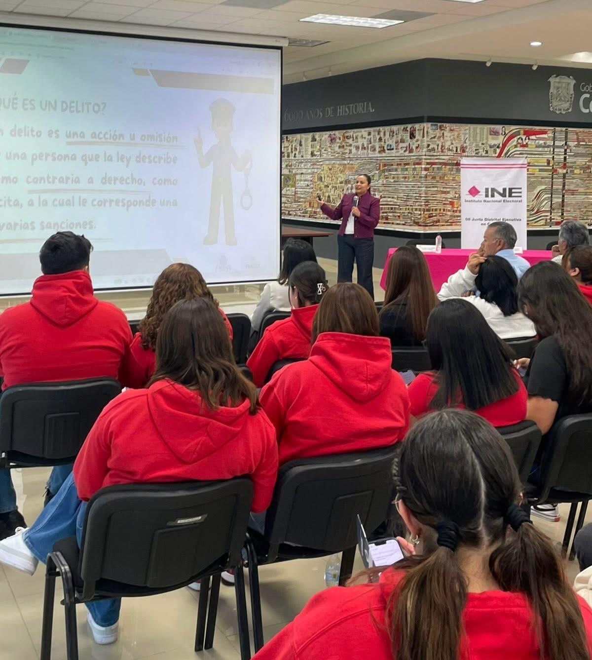 “Este tipo de conferencias permiten que nuestras y nuestros estudiantes comprendan desde ahora la relevancia de su papel como ciudadanos, fomentando una cultura de legalidad y participación responsable en la vida democrática del país”, señaló. (EDUARDO SERNA).