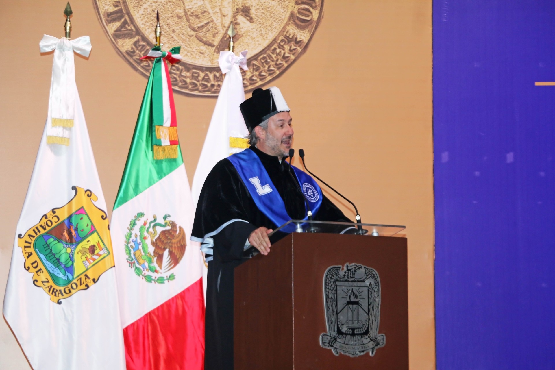 El secretario de Educación en Coahuila, Emanuel Garza Fishburn, en representación del gobernador Manolo Jiménez Salinas, señaló que el celebrar la gran huella e impacto de esta ceremonia por parte de la comunidad educativa de la Universidad Autónoma de Coahuila hacia el Dr. Francisco Javier Blanco García, es muy significativa, ya que, en ese espíritu de abrazar los momentos importantes de cualquier plano de la vida, ya que brindan bienestar y desarrollo de las comunidades.