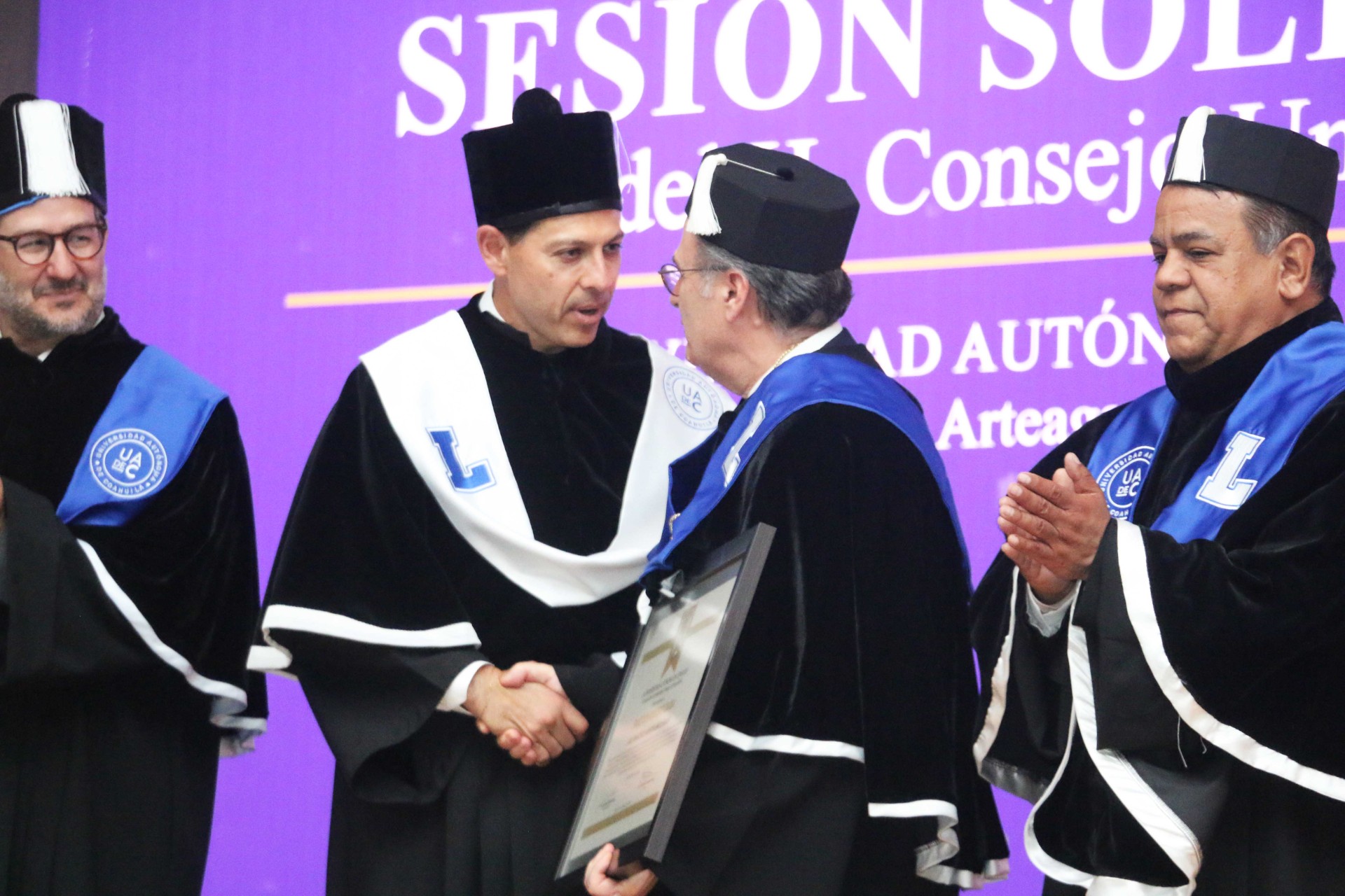 “Celebramos su legado, su trayectoria, fundamental en el desarrollo científico y académico, de las ciencias de la salud, no solamente en su país de origen, sino aquí en nuestra entidad, es por eso que aplaudimos que haya sido usted un constructor de puentes, como bien lo comentó, de aprendizaje y de colaboración entre nuestros países”, expresó Garza Fishburn.