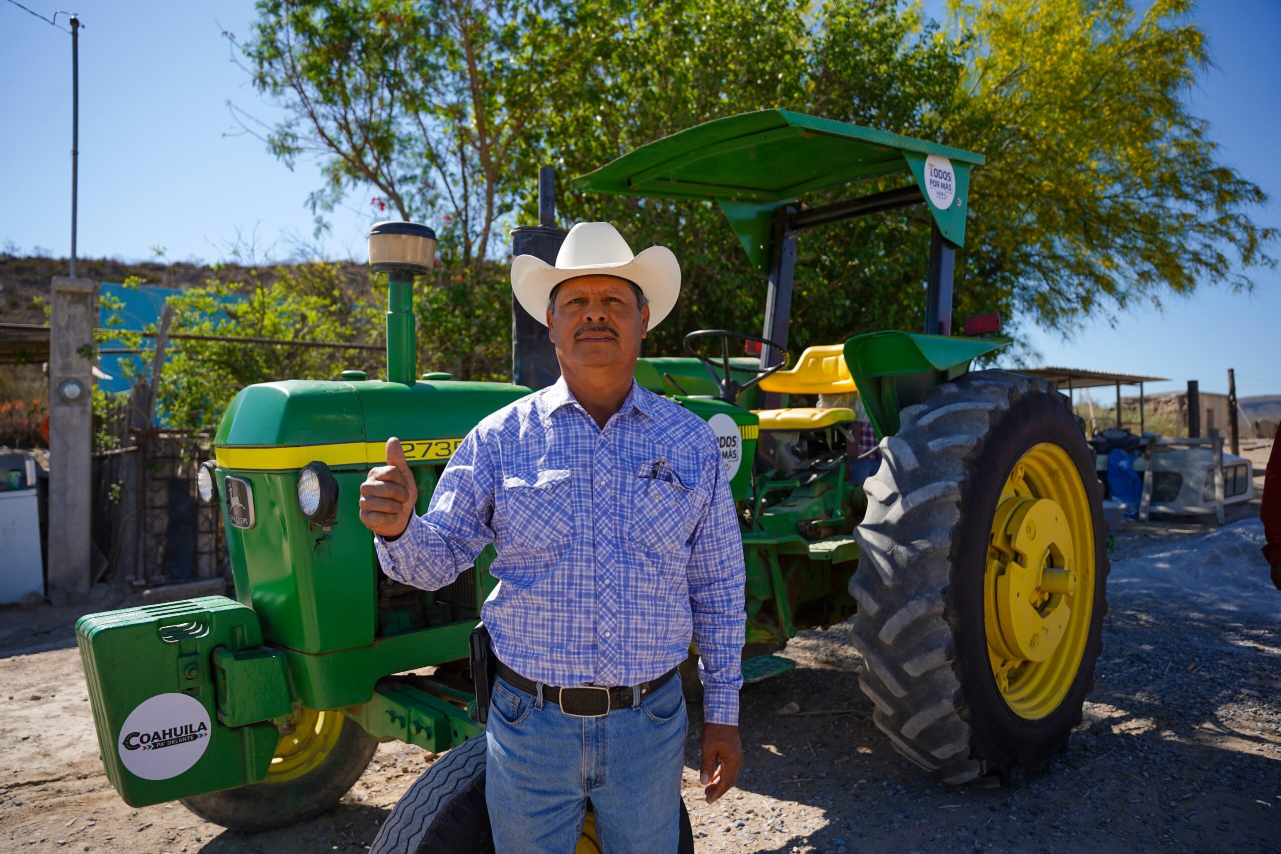 San Juan de Sauceda, Ramos Arizpe.- Habitantes del ejido San Juan de Sauceda reconocieron los beneficios generados a partir de la entrega de un tractor y un arado, apoyo que fortalece la producción agrícola y mejora las condiciones de trabajo en el campo.