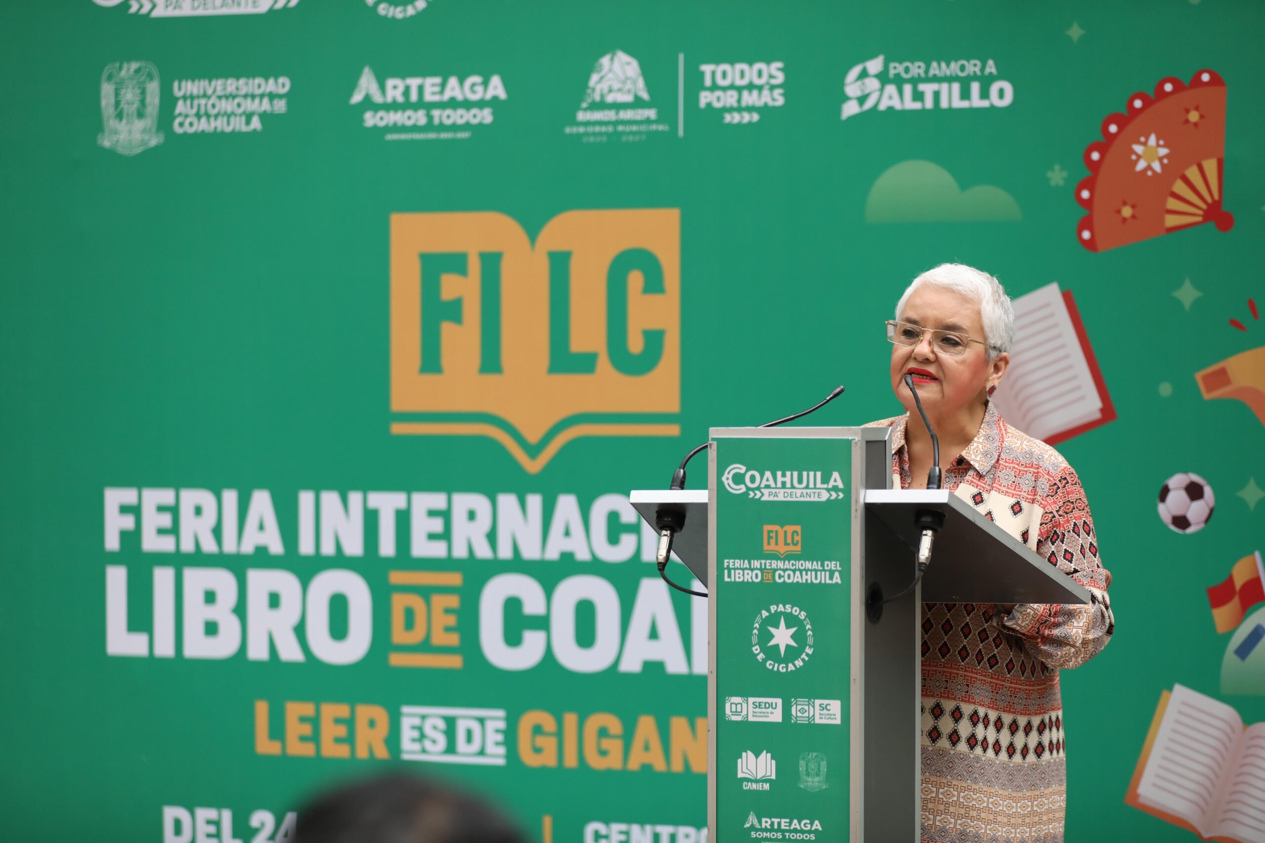 La secretaria de Cultura reconoció que la FILC es resultado del trabajo conjunto entre instituciones, destacando la colaboración con la CANIEM y la Universidad Autónoma de Coahuila, así como el esfuerzo de los equipos de Cultura y Educación.