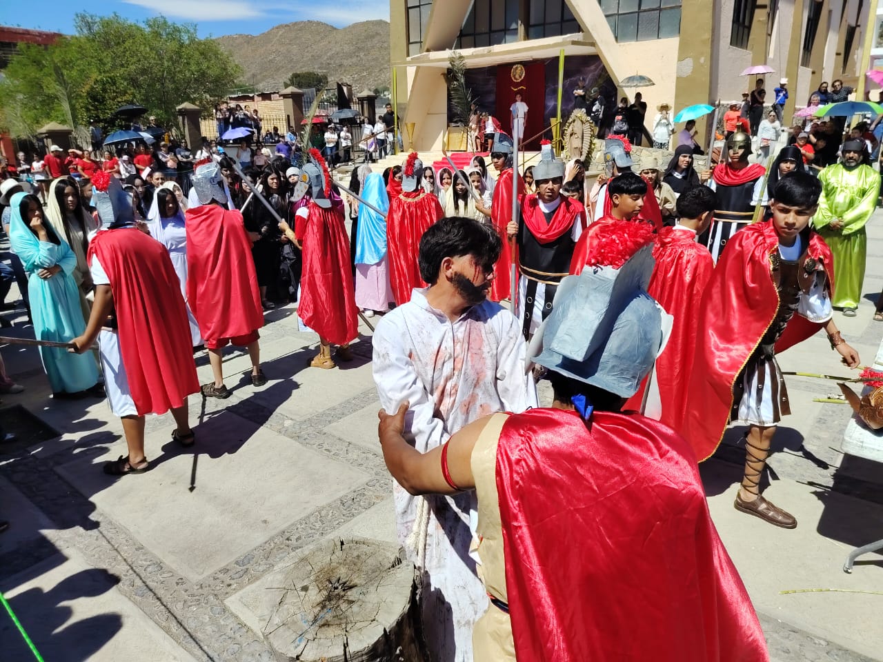 En punto de las 10:00 de la mañana, se inició con la representación del juicio de Jesús y la presentación ante Pilatos, para luego dar paso a la escena de la flagelación, la sentencia y posteriormente el camino hacia el Calvario.