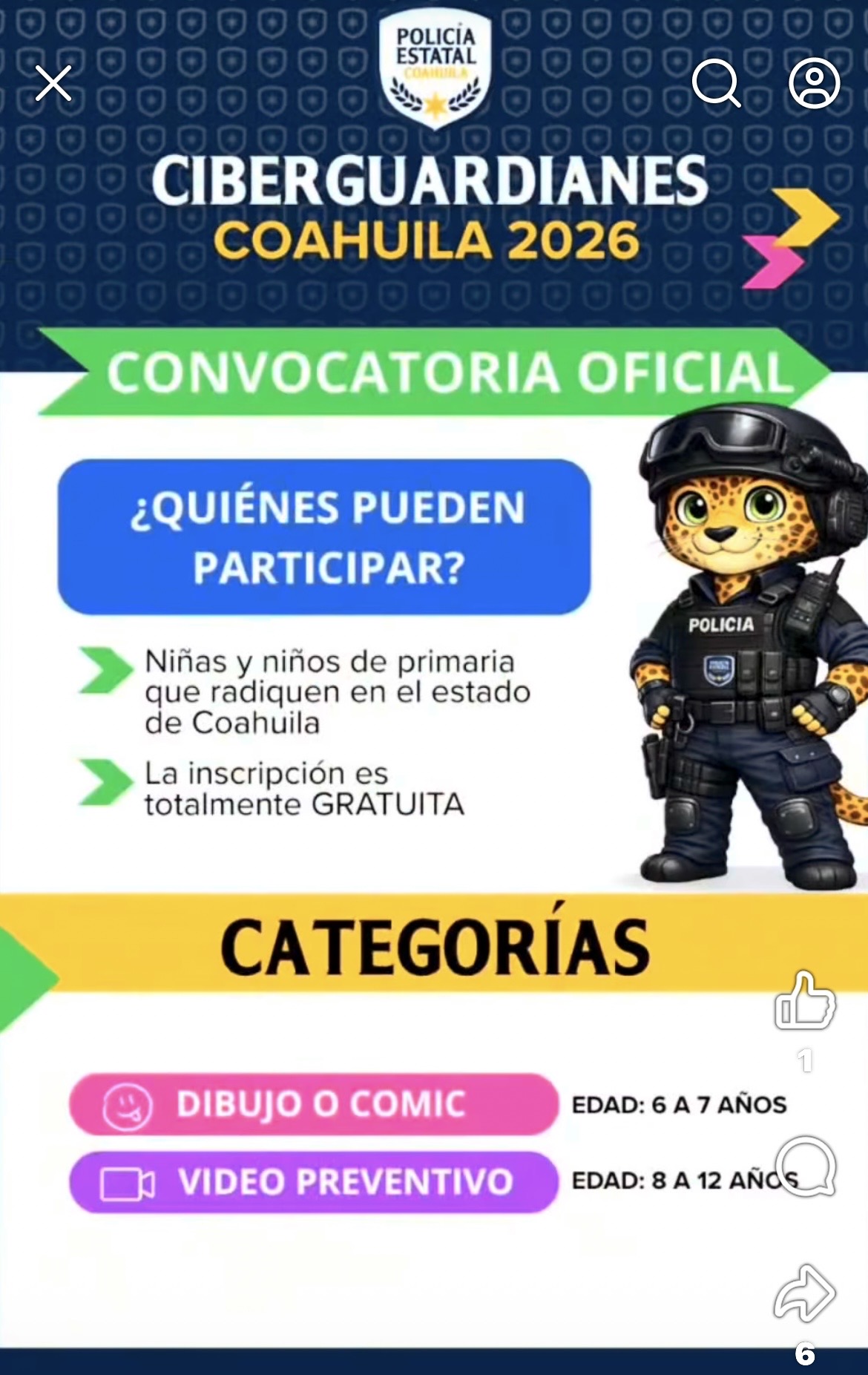 En el marco del Día del Niño, la Policía Cibernética de Coahuila lanzó la convocatoria de participación “Ciberguardianes 2026”, invitando a los menores estudiantes de nivel primaria a participar en el concurso de dibujo, cómic o video bajo el tema de ciberbullying.