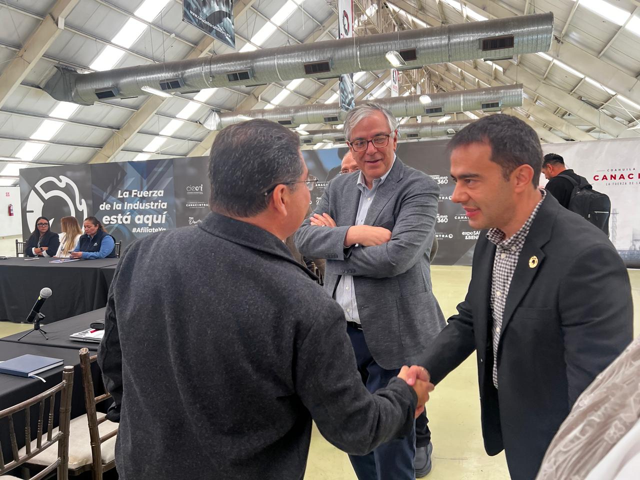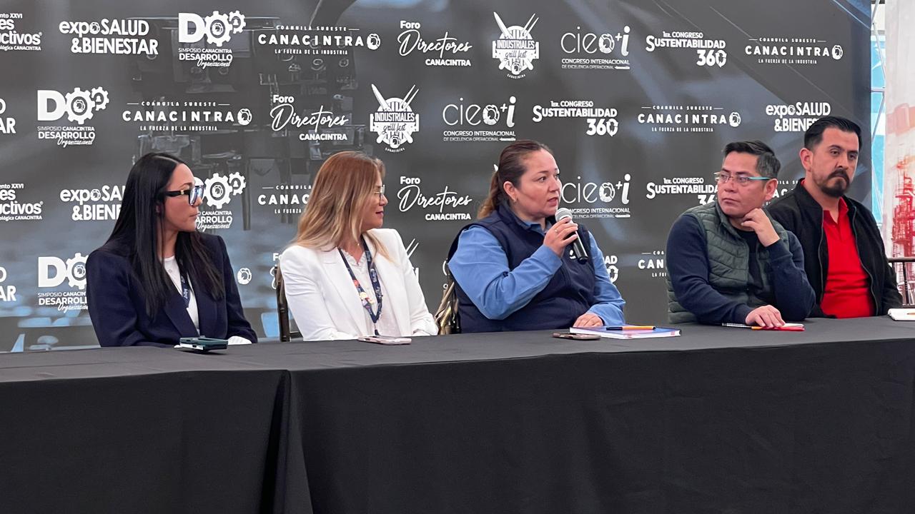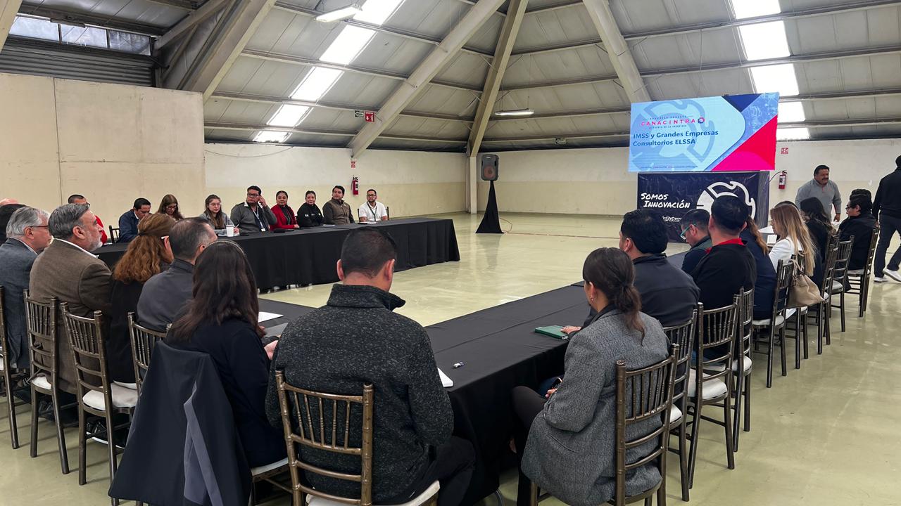 El Titular del Órgano de Operación Administrativa del IMSS en Coahuila, doctor José Valeriano Ibáñez de la Rosa, y el presidente de la Cámara Nacional de la Industria de la Transformación (Canacintra) Coahuila Sureste, Arturo Reveles Márquez, acompañaron esta presentación, realizada en el centro de convenciones de este organismo empresarial ante cerca de 30 directivos y jefes de área de diversos centros laborales.