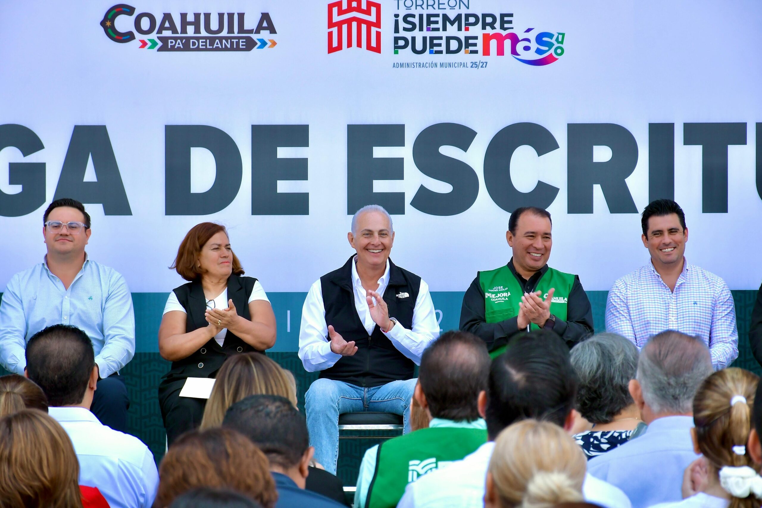 Asimismo, el presidente municipal resaltó que el proyecto de certeza patrimonial se fortalece también a través de las condiciones de seguridad que prevalecen en Torreón, y que se logran con trabajo, con voluntad, con proximidad, inversión, fuerza e inteligencia, así como por la alianza que existe entre sociedad y gobierno. “Hoy se cristaliza un proyecto a través de una escritura, pero vamos por la construcción de un mejor lugar para vivir para sus familias”.