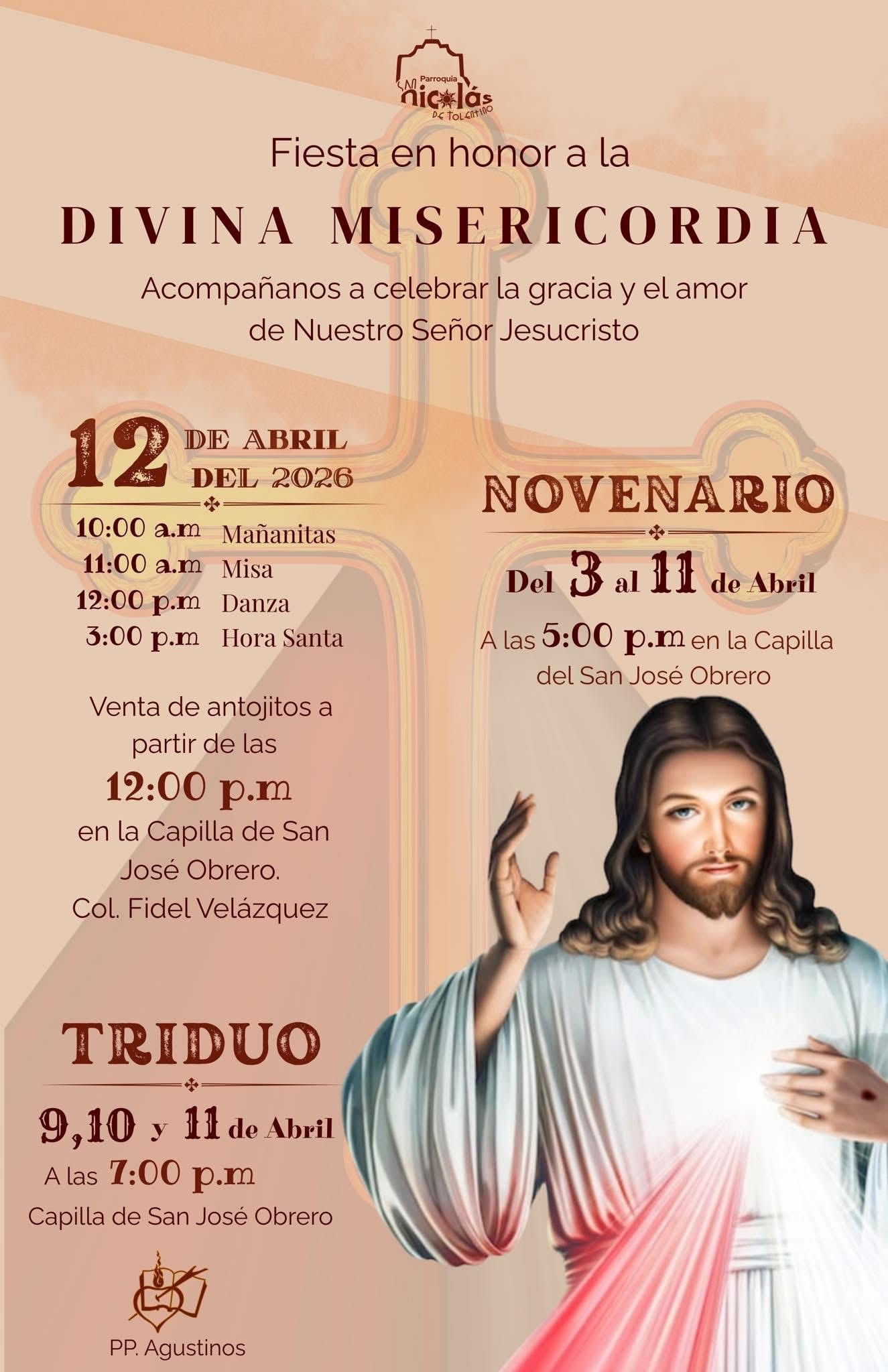 La parroquia de San Nicolás de Tolentino en Ramos Arizpe invita a la comunidad a participar en la celebración de la Fiesta de la Divina Misericordia, una de las festividades más significativas dentro del calendario católico, que se conmemora el domingo posterior a la Pascua como un recordatorio del amor y perdón de Dios.