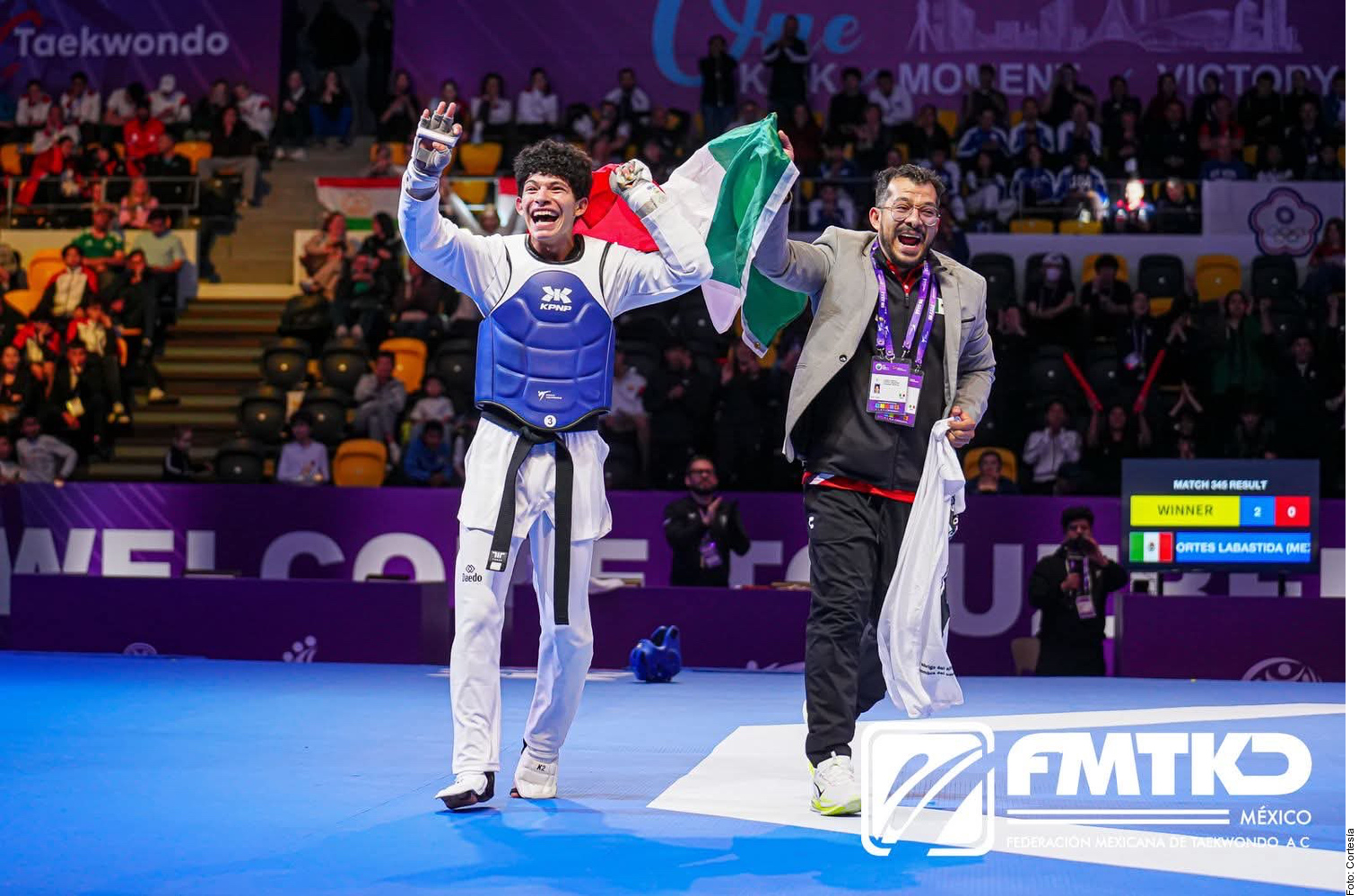 Cortés Labastida se coronó como Campeón Mundial Juvenil al vencer a Ji Woong Ha en la Final de Taekwondo -59 kilos, del Campeonato de Tashkent, Uzbekistán.