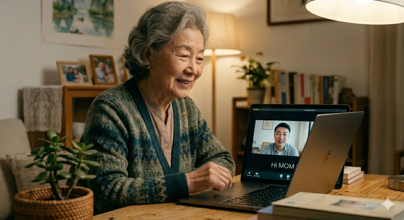 Para justificar que no está físicamente presente, el “hijo” digital le dice que trabaja en otra ciudad. Durante las conversaciones, ella le insiste en que se cuide y le reclama: “Deberías llamarme más seguido para saber si estás bien”. Él responde que está muy ocupado, pero que volverá a casa cuando reúna suficiente dinero.