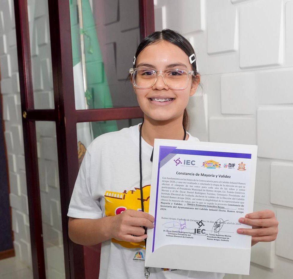 Con propuestas enfocadas en mejorar su entorno y una participación activa en la vida pública, niñas y niños de Ramos Arizpe integraron el Cabildo Infantil 2026, donde fue designada como alcaldesa infantil Ange Gabrielle Cedillo Almanza y como secretaria del Ayuntamiento infantil Amaya Aranzazu González Reyes, consolidando un ejercicio que impulsa la formación cívica y la cultura democrática desde temprana edad.