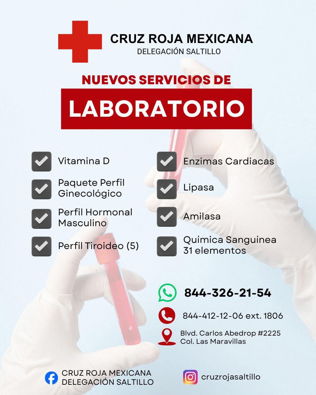 En ese sentido, la Cruz Roja Saltillo ha hecho un llamado a las y los saltillenses que así lo requieran para que accedan a estos servicios de laboratorio y reciban una atención profesional, con calidad humana y a precios accesibles solicitando mayor información a través del número de WhatsApp 844 326 21 54 o al teléfono 844 412 12 06.