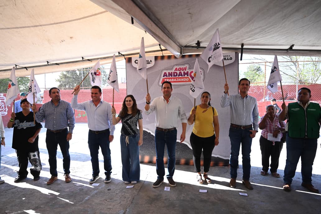 El alcalde de Saltillo, Javier Díaz González, dio arranque a las obras de rehabilitación de una cancha de fútbol 7 ubicada en la colonia Morelos, como parte del programa Activa tu Parque.