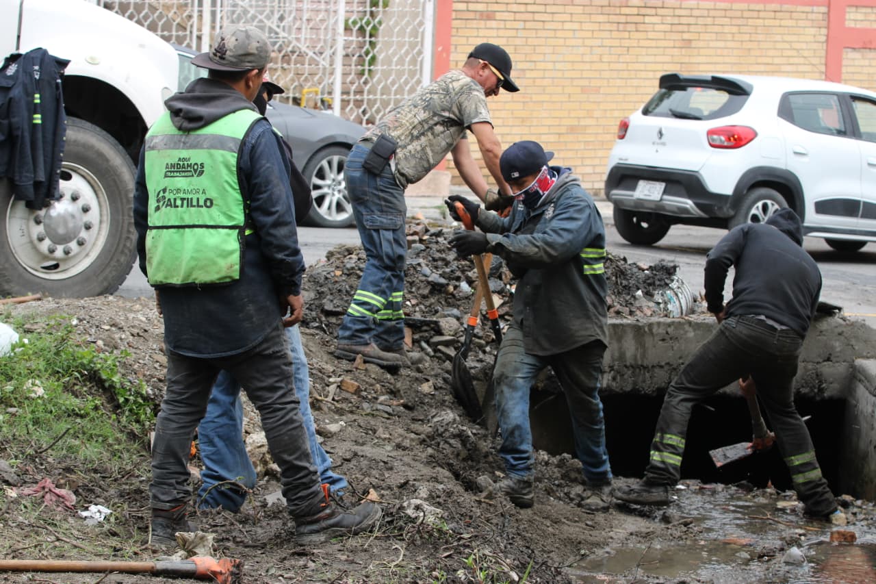 De manera paralela, personal municipal trabajó en el desazolve del canal pluvial ubicado sobre la calle Pedro de Aguirre y el cruce con la calle General Manuel Pérez Treviño, del fraccionamiento Urdiñola.