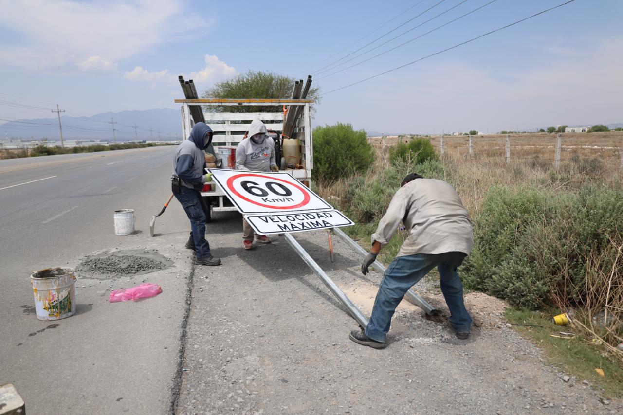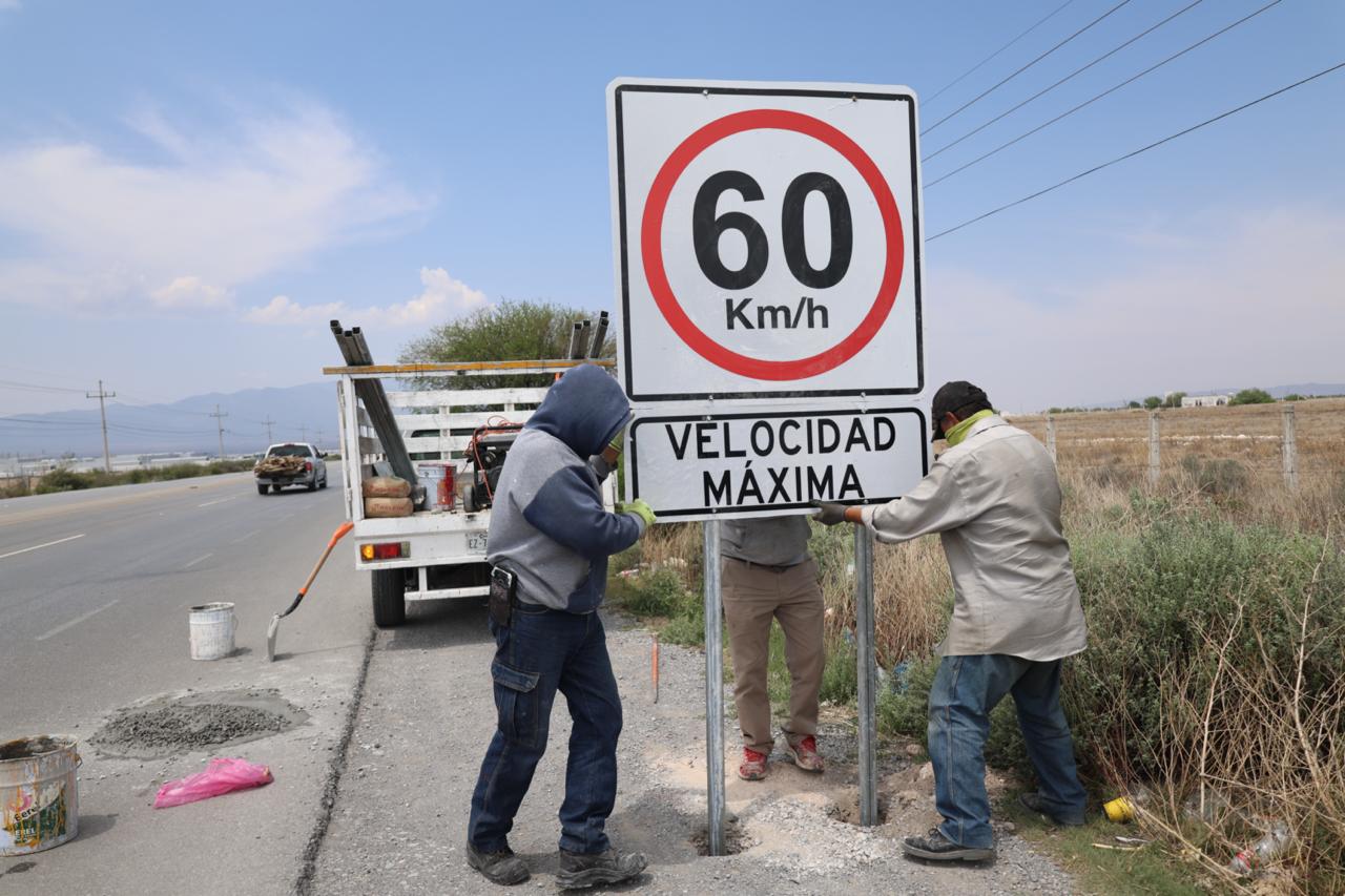 De manera complementaria, con el apoyo del gobernador Manolo Jiménez Salinas, el Municipio instaló nuevas señales viales, así como la delimitación de carriles mediante la aplicación de pintura blanca y amarilla, con el propósito de mejorar la visibilidad y el orden del tránsito, en beneficio de peatones y automovilistas.