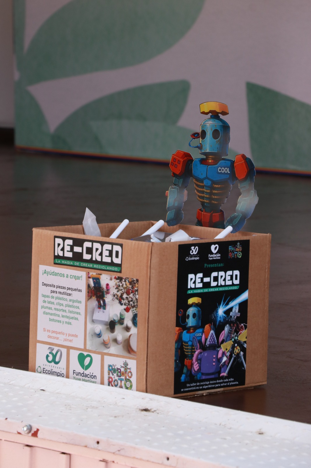 Las niñas y niños participaron en el Taller Roboto Roto, un taller de reciclaje 100% interactivo y dinámico, con un enfoque futurista, donde los personajes oficiales de la historia viajan desde el futuro hasta el presente, a hacer un llamado a la acción a los niños para que juntos construyan su propio robot reciclado que será parte del cambio para salvar al planeta.