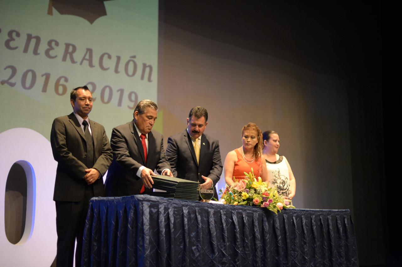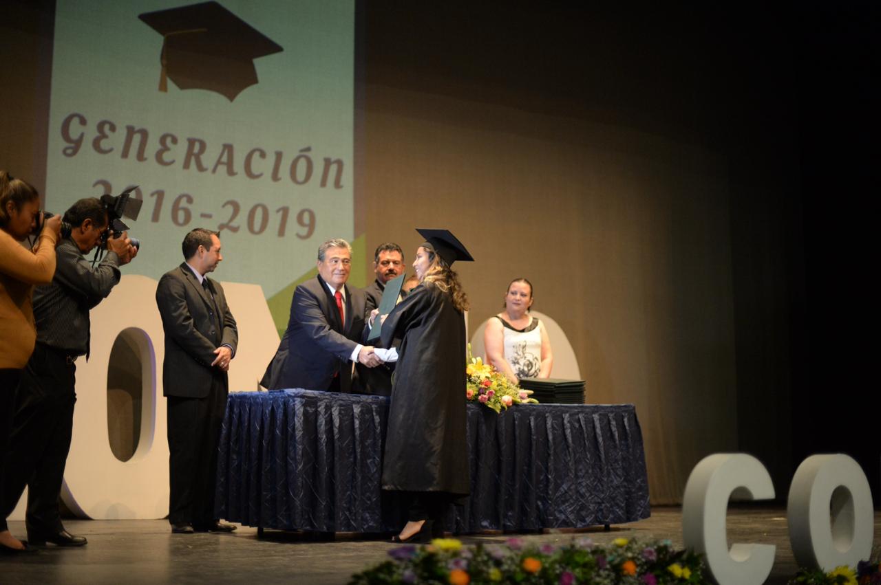 En este sitio, el titular de CONALEP, Vega de la Peña, hizo entrega de los certificados de fin de curso a los alumnos graduados, pero además a los alumnos con mayor promedio de aprovechamiento, evento en el que estuvo acompañado de directivos del plantel y padres de familia de los jóvenes graduandos.