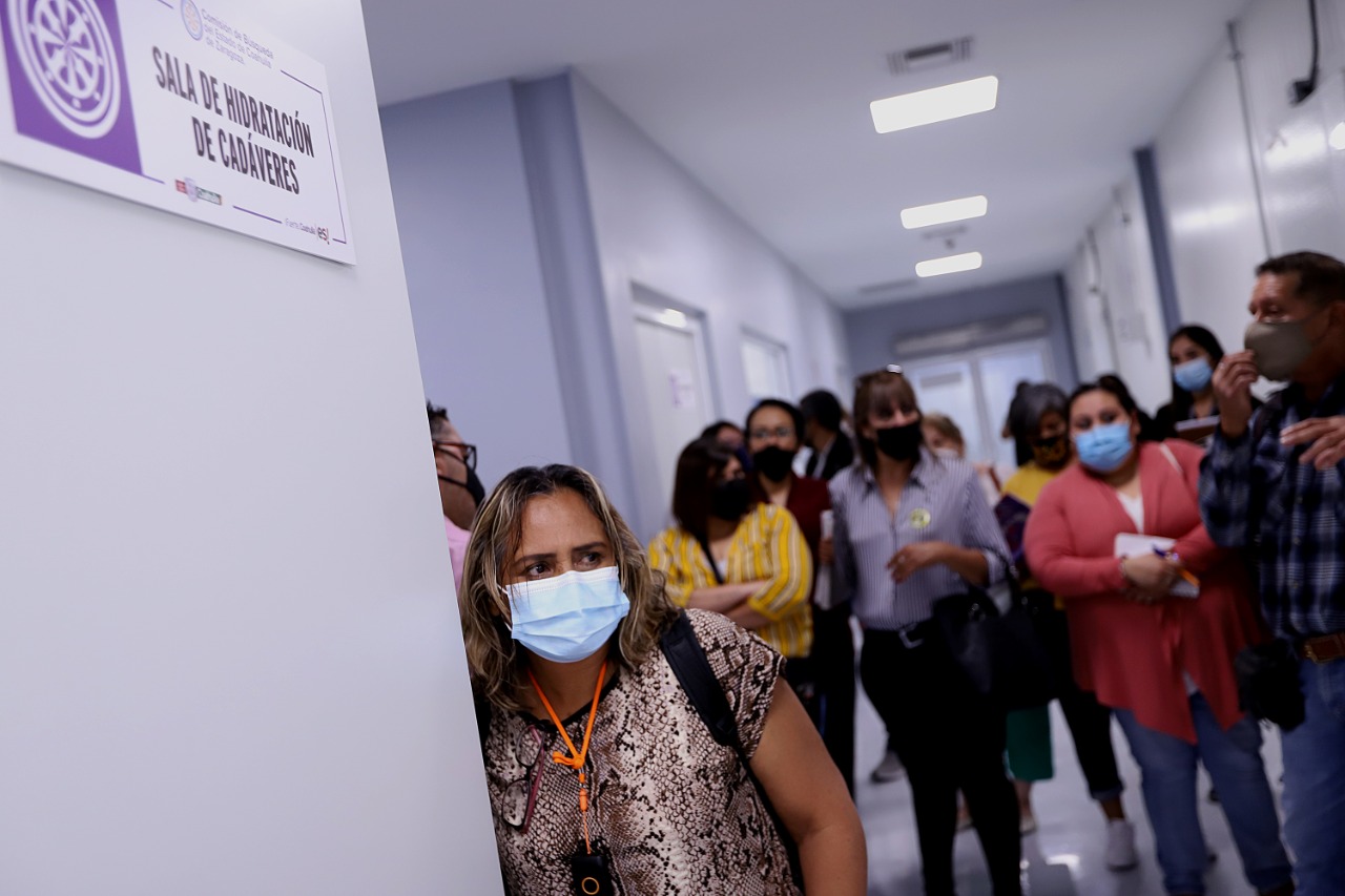 Familias integrantes de los colectivos de personas desaparecidas, personal del Comité Internacional de la Cruz Roja, así como integrantes de la ONUDH, acudieron este viernes al Centro Regional de Identificación Humana (CRIH) de la Comisión de Búsqueda del Estado de Coahuila para conocer y atestiguar el proceso post mortem que realiza el Área de Antropología Forense.