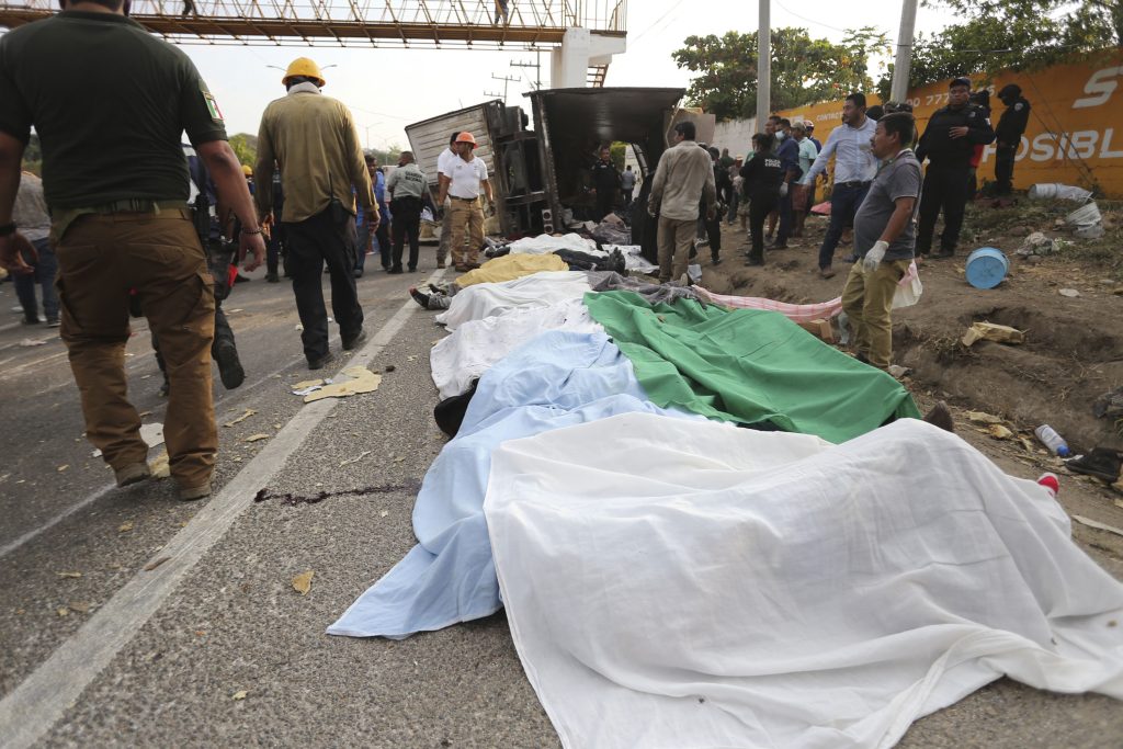 El accidente ocurrió cuando la caja del tráiler en donde viajaban al menos 166 migrantes provenientes de Guatemala, Honduras, El Salvador, Nicaragua, República Dominicana y Ecuador volcó después de que presuntamente el chofer conducía a exceso de velocidad y se quedó sin frenos.