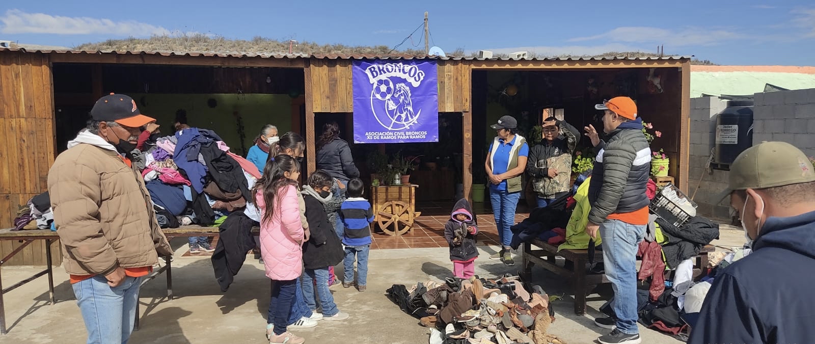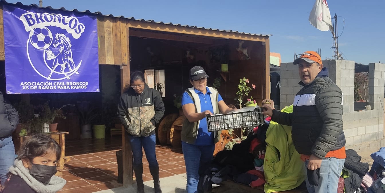 Alrededor de 20 familias del ejido Santa Rita del Muerto resultaron beneficiadas con la entrega de ropa y calzado que les hizo llegar la asociación civil ‘Broncos XS de Ramos y para Ramos’. La donación de casi 500 prendas de vestir y 100 pares de zapatos se realizó en las inmediaciones de la zona ejidal, la cual se encuentra a más 40 kilómetros de la cabecera municipal.
