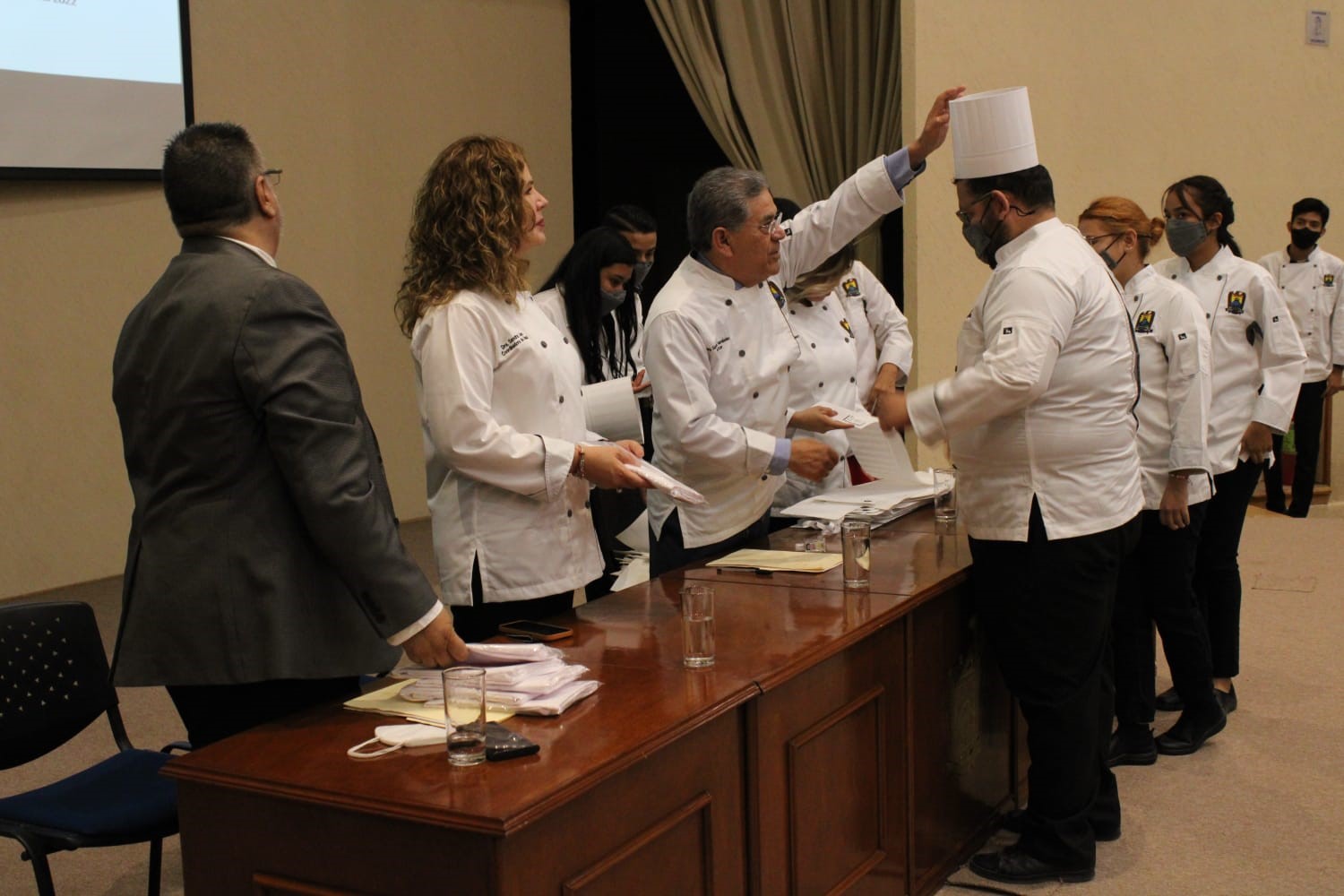 La ceremonia tuvo lugar en el Centro Cultural “Braulio Fernández Aguirre”, con la presencia del rector de la máxima casa de estudios, Salvador Hernández Vélez, la coordinadora de la Unidad Torreón, Sandra López Chavarría, la directora de la Facultad, Reyna Jazmín Rodríguez, la coordinadora de la carrera, Yolanda Elizabeth de la Tejera Thomas, el director de Posgrado del plantel, Manuel Medina Elizondo y representantes de la CANIRAC, CANACINTRA, del ramo hotelero y gastronomía.