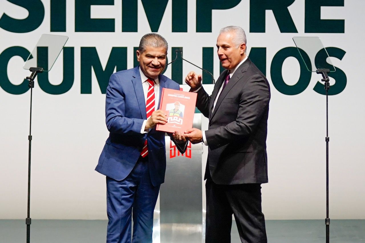 Torreón, Coah.- El gobernador Miguel Ángel Riquelme Solís acompañó al Alcalde de Torreón, Román Alberto Cepeda González, en la presentación de su Primer Informe de Resultados, a quien le reconoció que trabaja con orden, planeación, transparencia y un presupuesto bien estructurado.