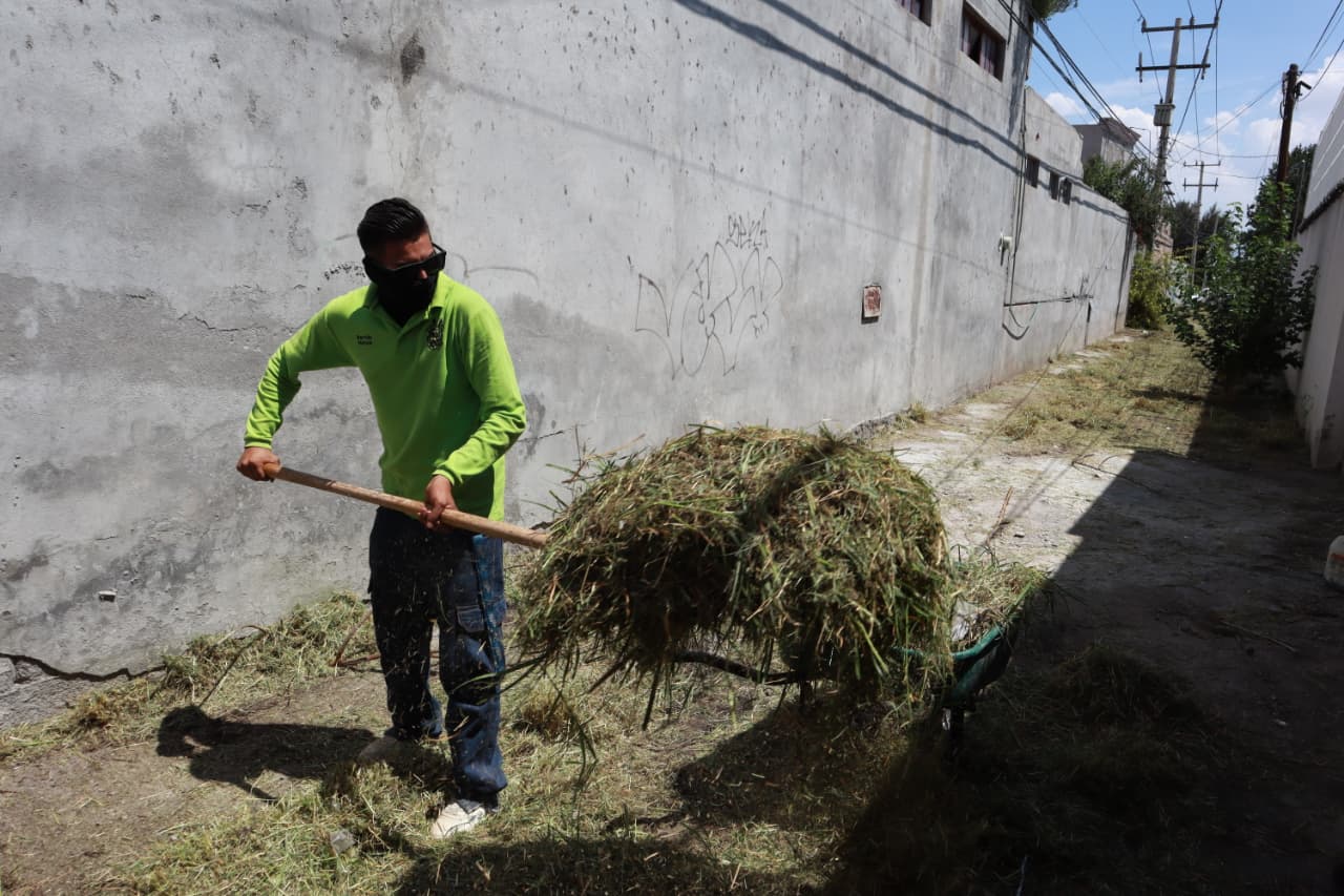 Brigadas municipales deshierbaron y retiraron la basura acumulada y escombro que se encontraba al interior del callejón que corre entre las calles Clemente Orozco y Francisco Toledo, del fraccionamiento San Isidro.