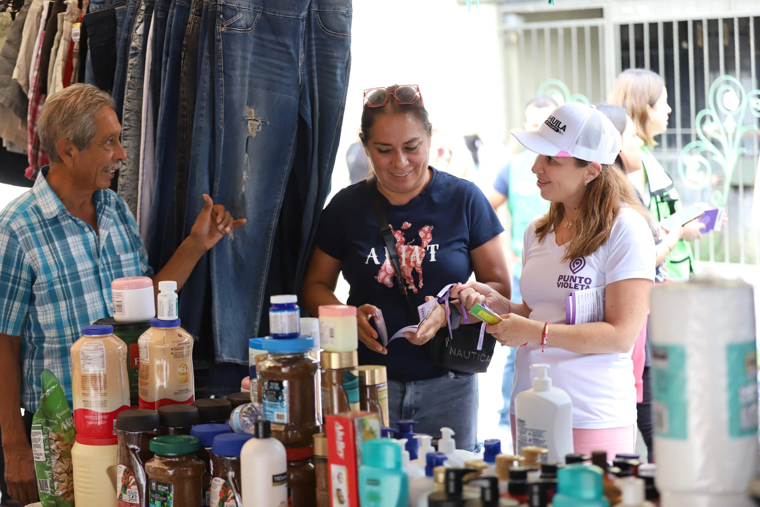 La secretaria de Vinculación Ciudadana, Proyectos de Innovación Social e Inversión Público Productiva, María Bárbara Cepeda Boehringer continúa visitando los mercados de Saltillo para llevar información sobre el programa de Punto Violeta, y recordar a la ciudadanía que se cuenta con espacios seguros para las mujeres en diferentes sectores.