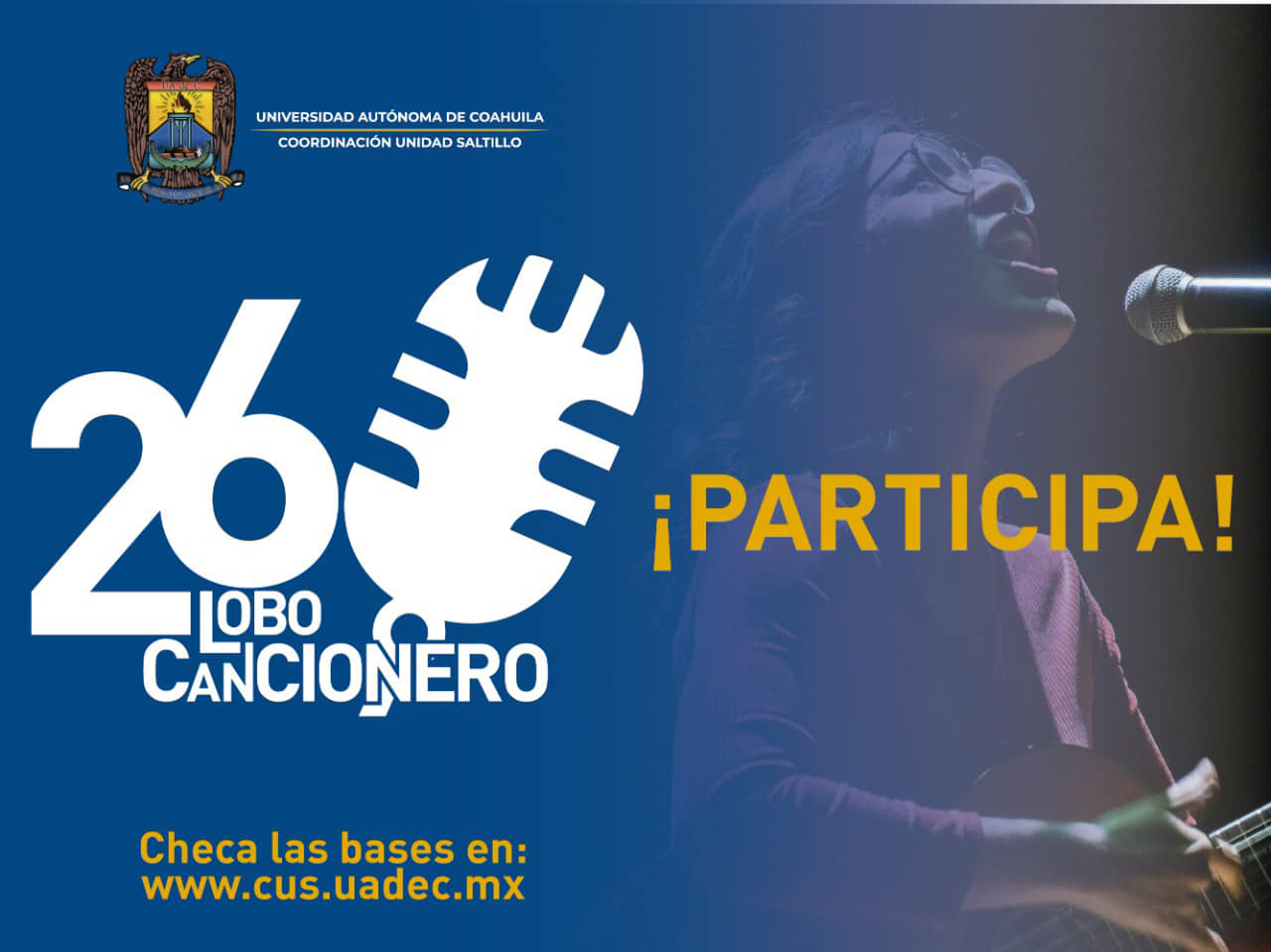 La Universidad Autónoma de Coahuila, a través de la Coordinación de Unidad Saltillo, invita a la comunidad universitaria a participar en la XXVI edición del Festival Lobo Cancionero.