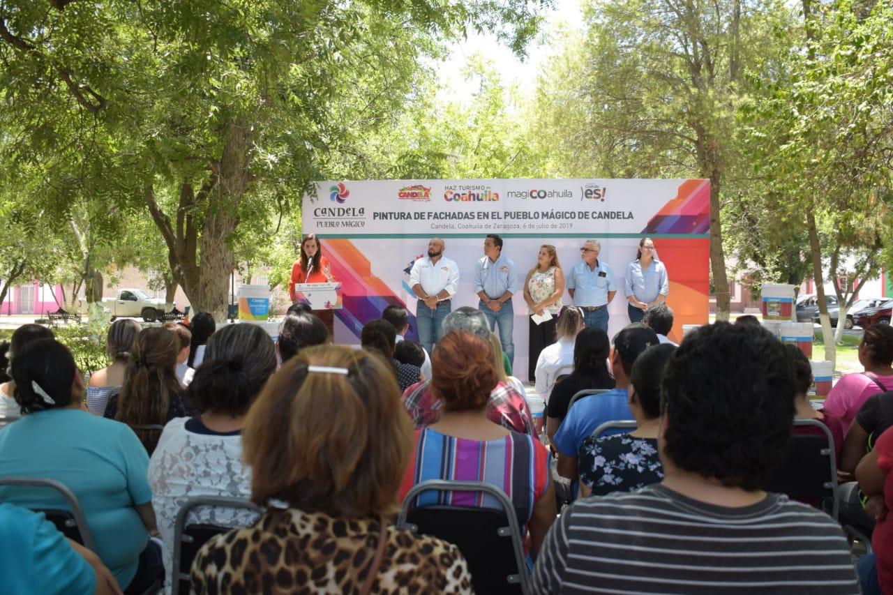 Candela. Con el respaldo del gobernador Miguel Ángel Riquelme, los Pueblos Mágicos de Coahuila son apoyados con pintura para las fachadas de viviendas de sus centros históricos, con el fin de mejorar la imagen urbana, señaló Guadalupe Oyervides Valdez, secretaria de Turismo y Desarrollo de Pueblos Mágicos del Estado.