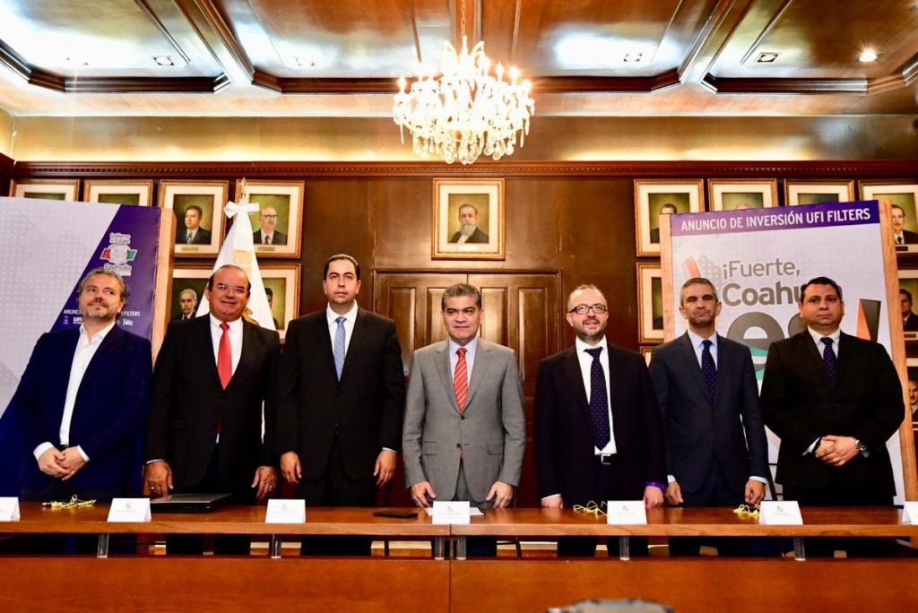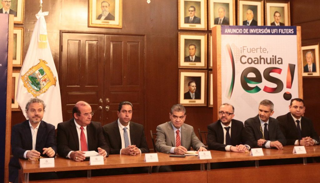 Con una inversión de alrededor de 25 millones de dólares, el gobernador Miguel Ángel Riquelme anunció la instalación de la nueva planta de UFI Filters en la Región Sureste de Coahuila.